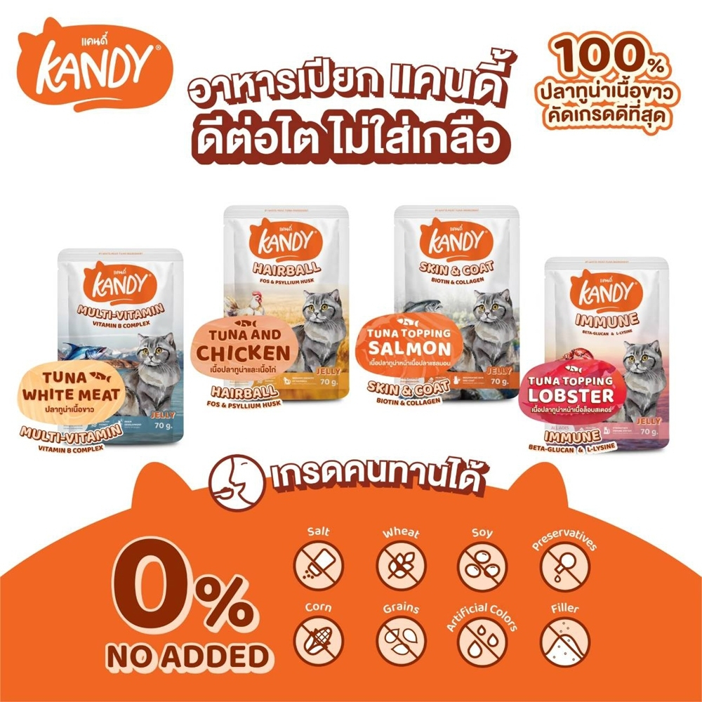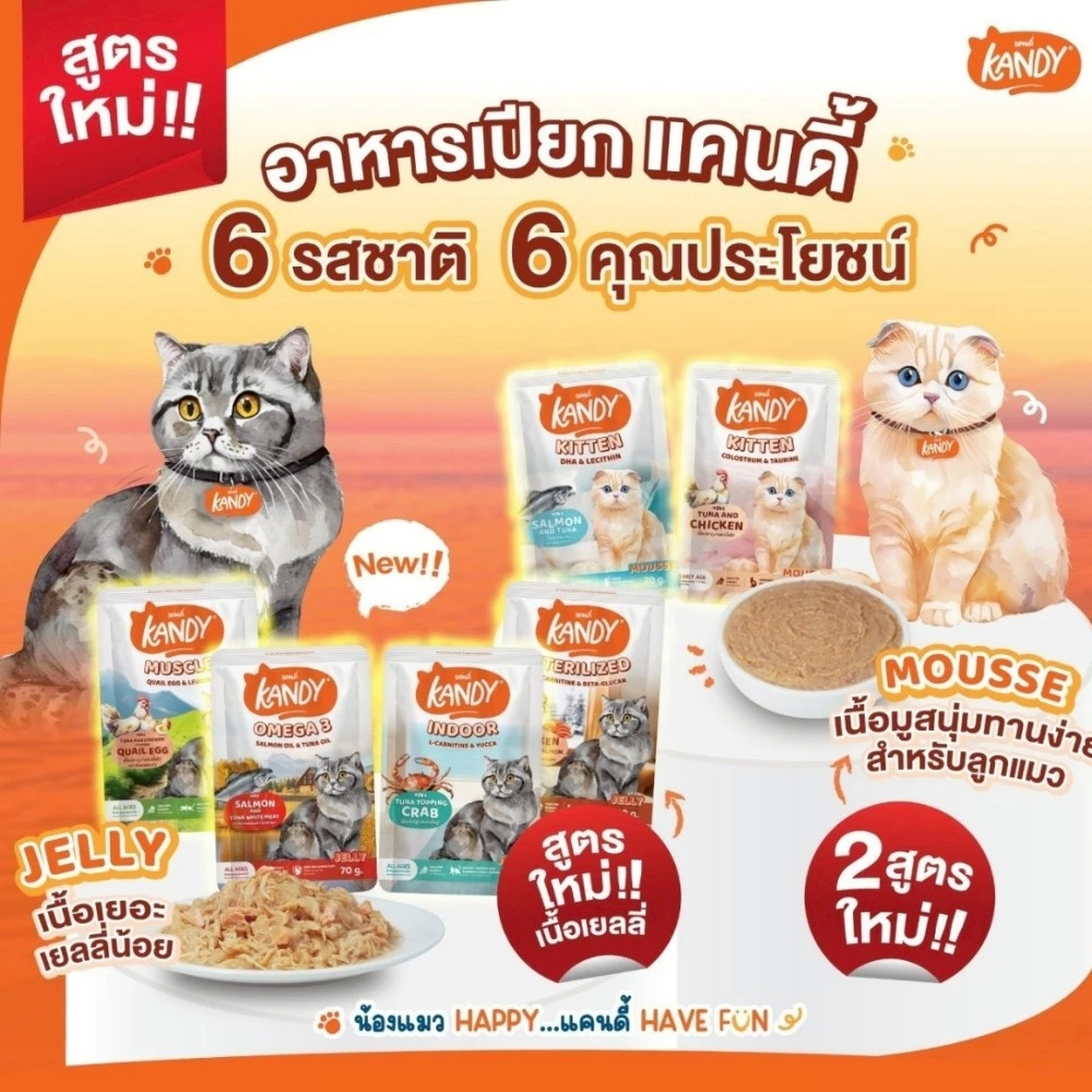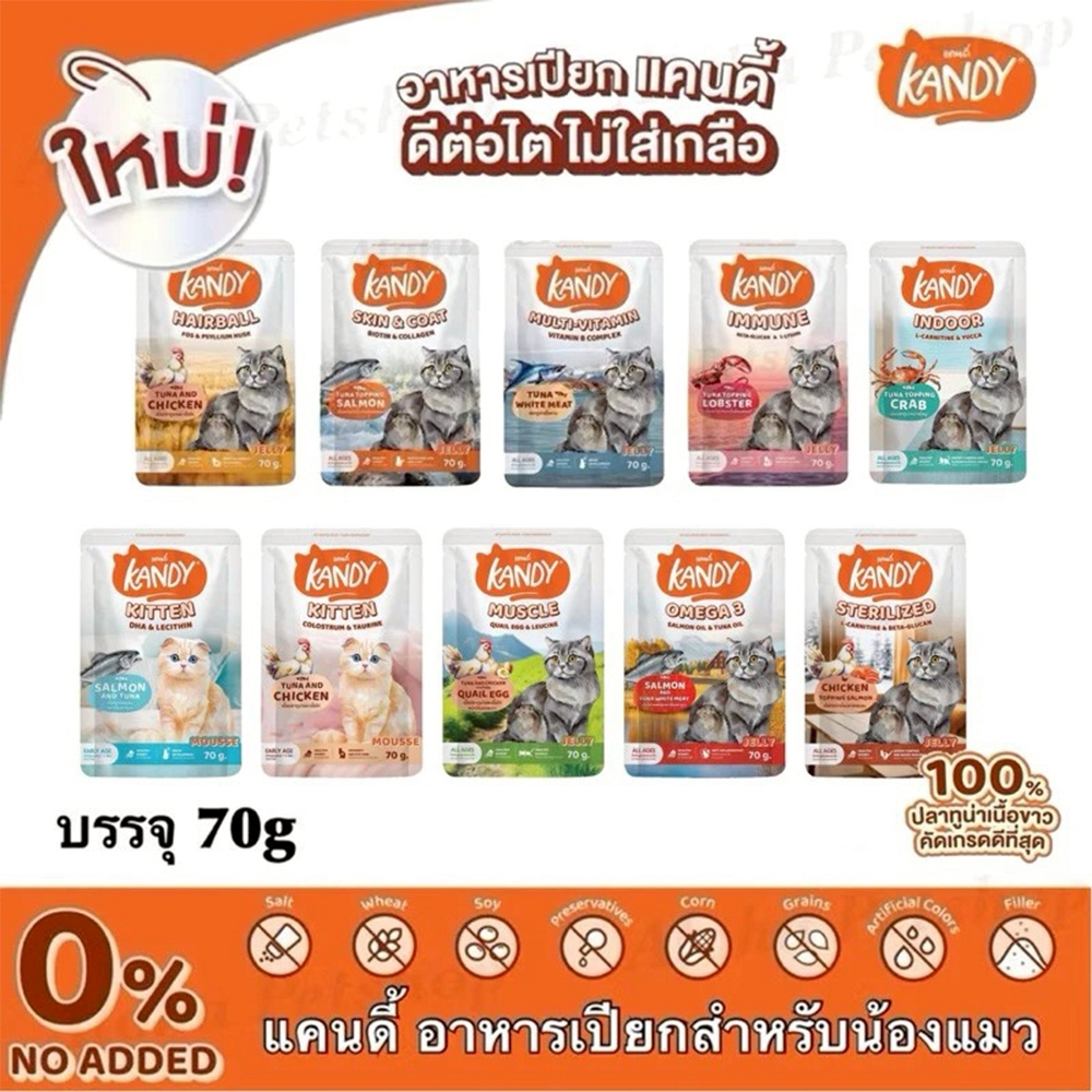 อาหารเปียกแมว Kandy สำหรับลูกแมว และแมวโต ตั้งแต่ 2 เดือนขึ้นไป ขนาด 70 กรัม 12ซอง/1โหล