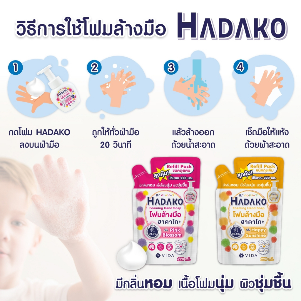 [ลดกระหนึ่า] โฟมล้างมือ ฮาดาโกะ ถุงเติม 220 ml 24 กลิ่น Pink Blossom (Hadako Foaming Hand Soap) 24 ถุง