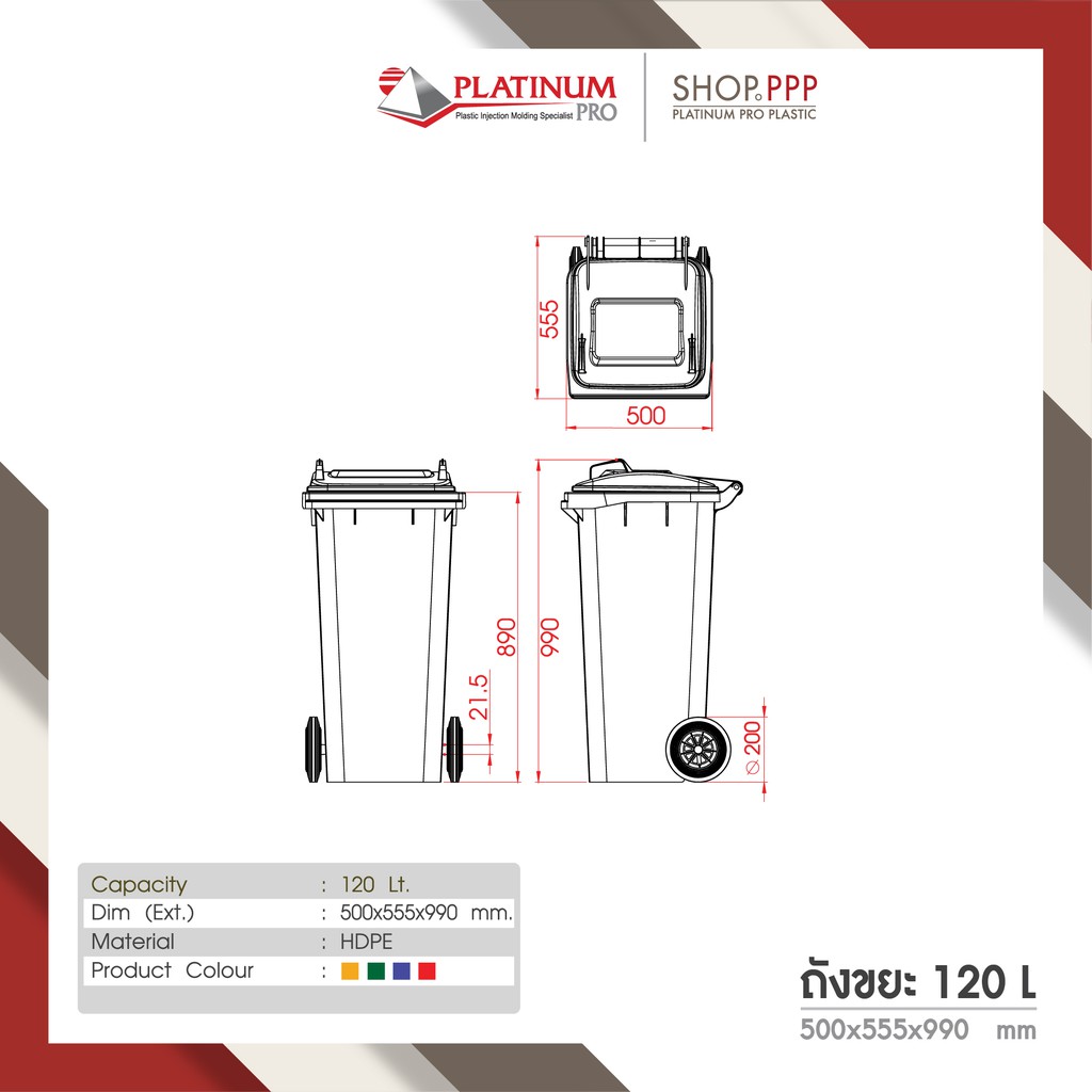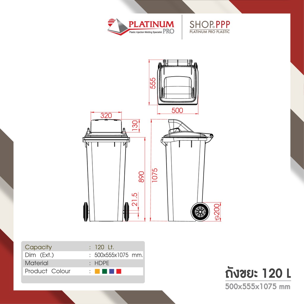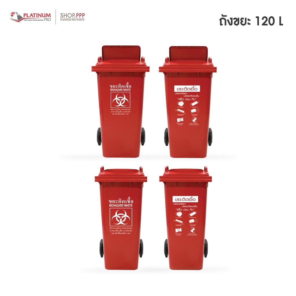 ถังขยะ ขนาด 120 ลิตร สกรีนขยะติดเชื้อ 50x55x11mm