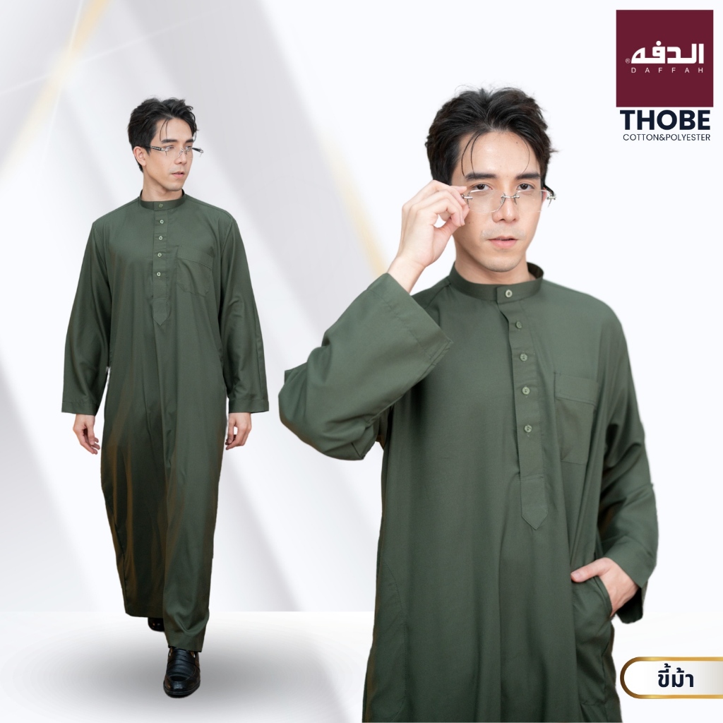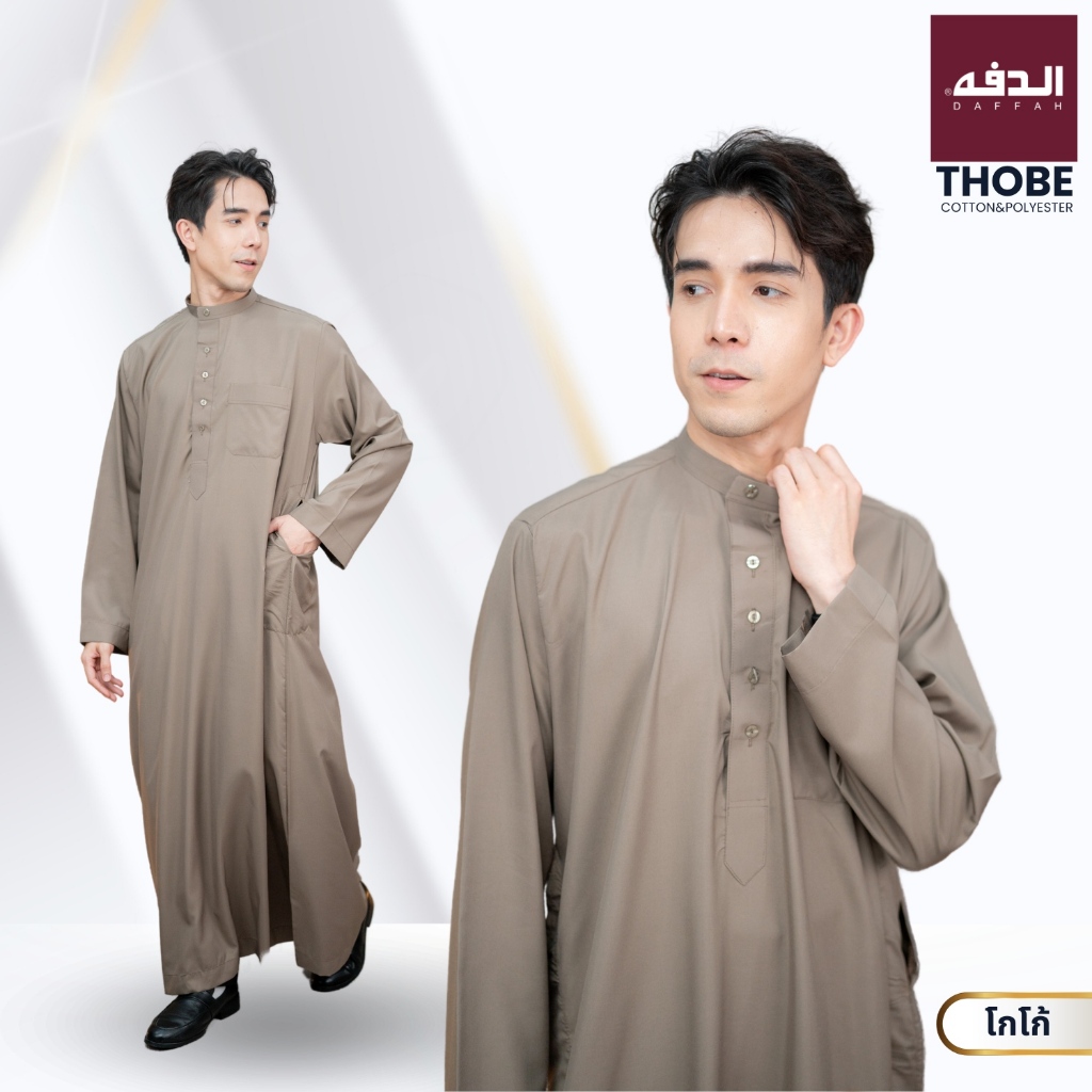 โต๊ปแขนยาวผู้ชาย แบรนด์ DAFFAH ดั๊ฟฟะห์ คอจีนใส่สบายมากๆเนื้อผ้าคอตตอนผสมโพลี AE86 รุสมีนีมุสลิม