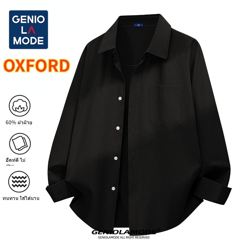 GENIO LAMODE เสื้อเชิ้ตแขนยาว OXFORD ผู้ชายและผู้หญิง ทรงมาตรฐานคอปก ใส่สบายระบายอากาศดี ไม่ลอกไม่บวม M-4XL