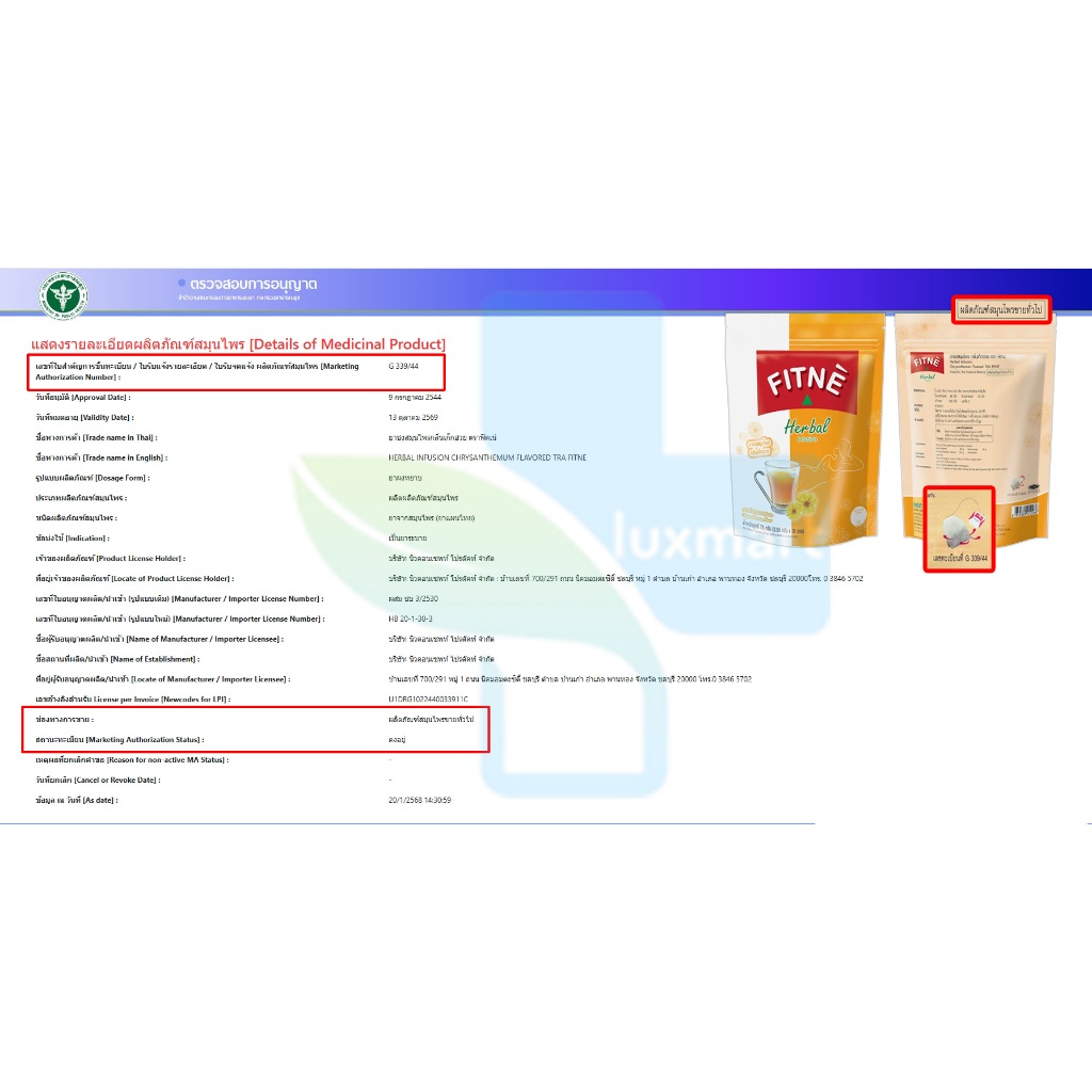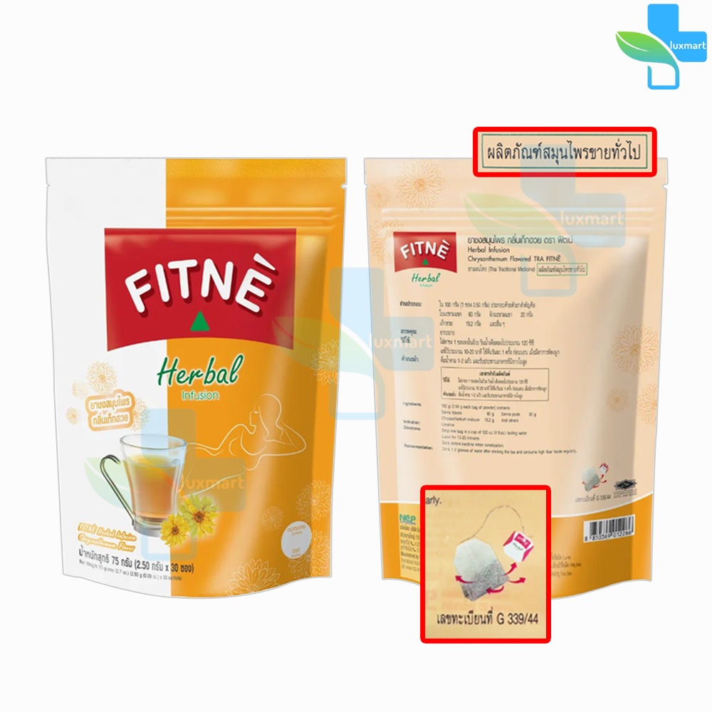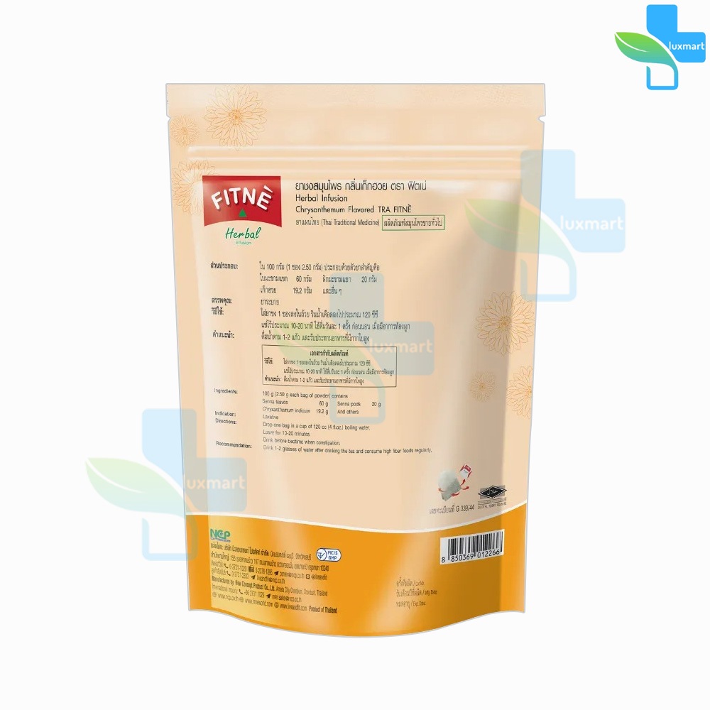 FITNE' Herbal Tea Chrysanthemum ฟิตเน่ ชาชงสมุนไพร กลิ่นเก็กฮวย ขนาด 30 ซอง [1 ห่อ สีเหลือง] BB 6207 ชา ชง สมุนไพร