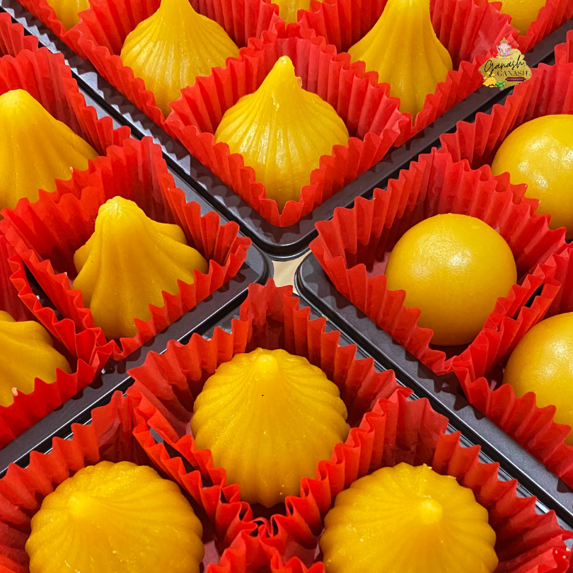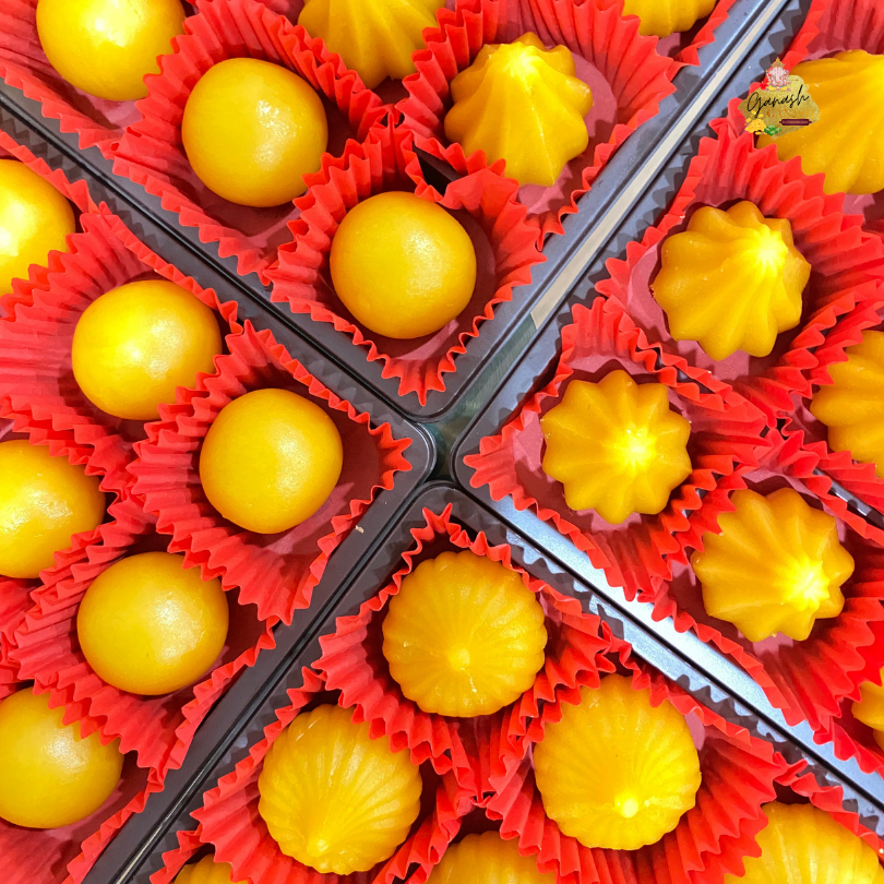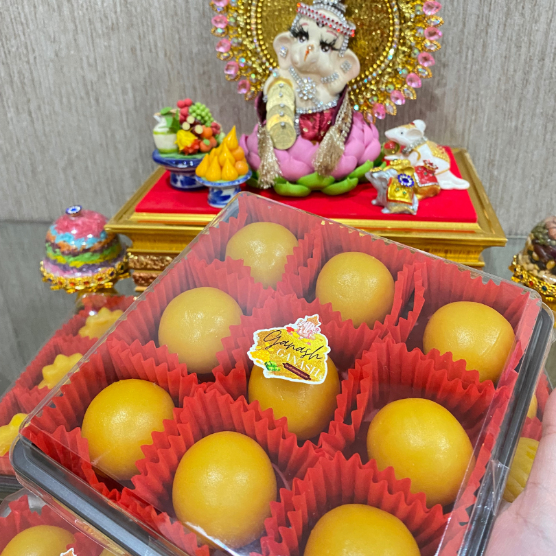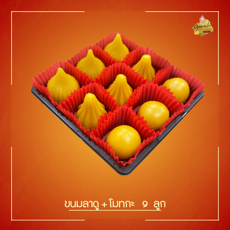 ขนมลาดู ขนมโมทกะ ลาดูงาดำ ขนาด 25 กรัม และ 45 กรัม ขนมลาดูโมทกะ ขนมไหว้พระพิฆเนศ ขนมมงคล ขนมขอพรอินเดีย Ganash
