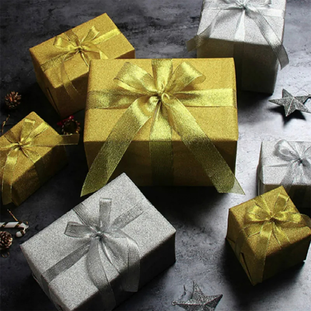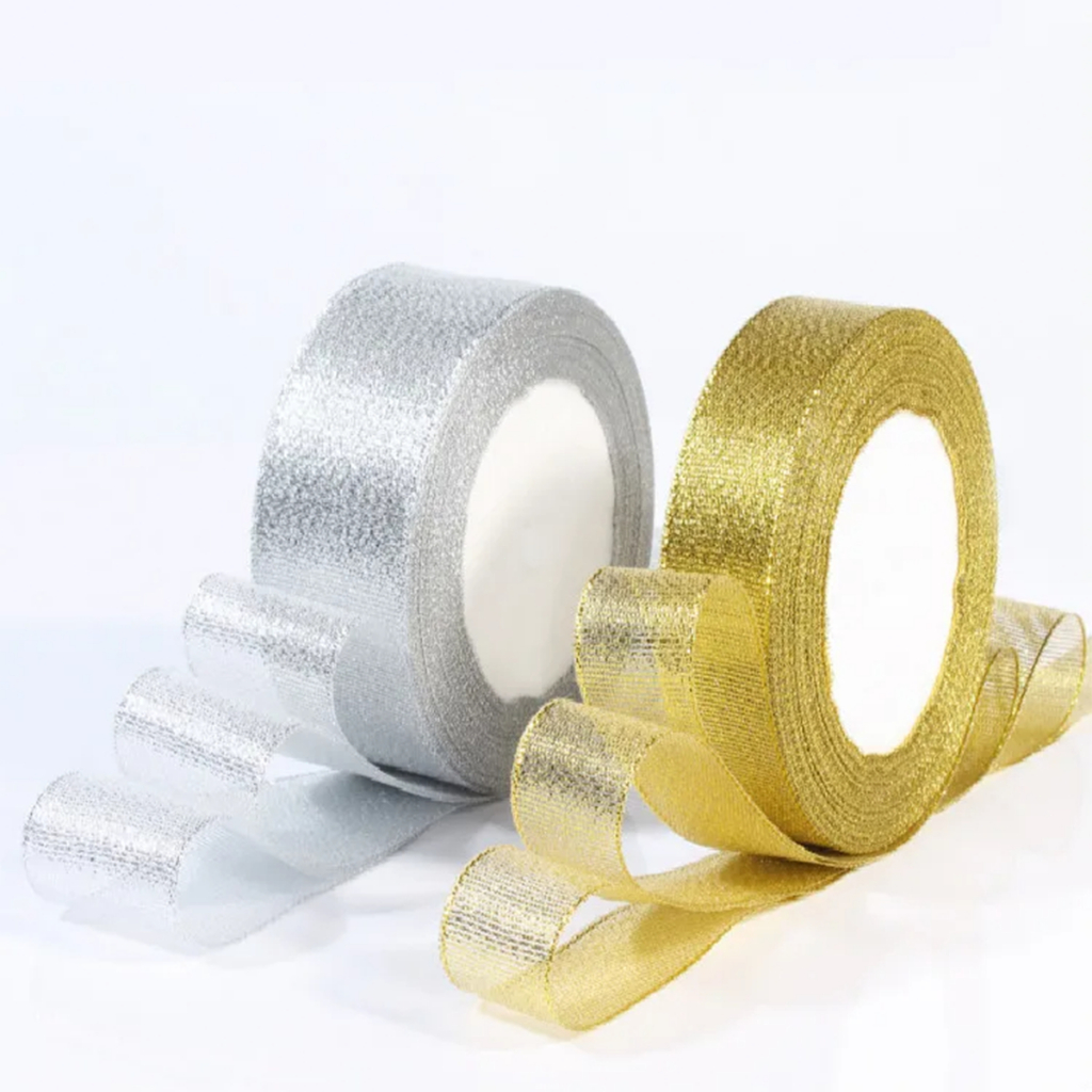 ริบบิ้นเนื้อทราย ริบบิ้นผ้า ยาว25หลา (สีเงิน/ทอง) ริบบิ้นกล่องของขวัญคริสต์มาส บรรจุภัณฑ์ ริบบิ้น ริบบิ้นเนื้อทราย