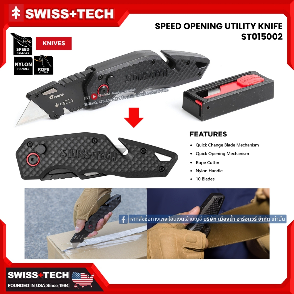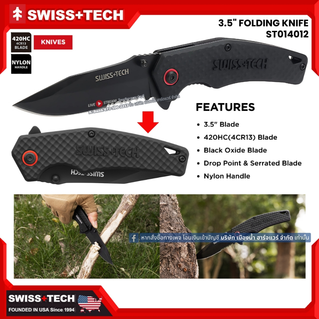 SWISSTECH มีดพับพกพา (มีดเดินป่า) มีหลายแบบ รับประกันของแท้ ST014001 ST014012 ST014015 ST015002 ST014039 ST014006