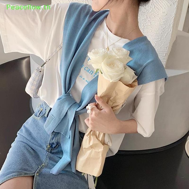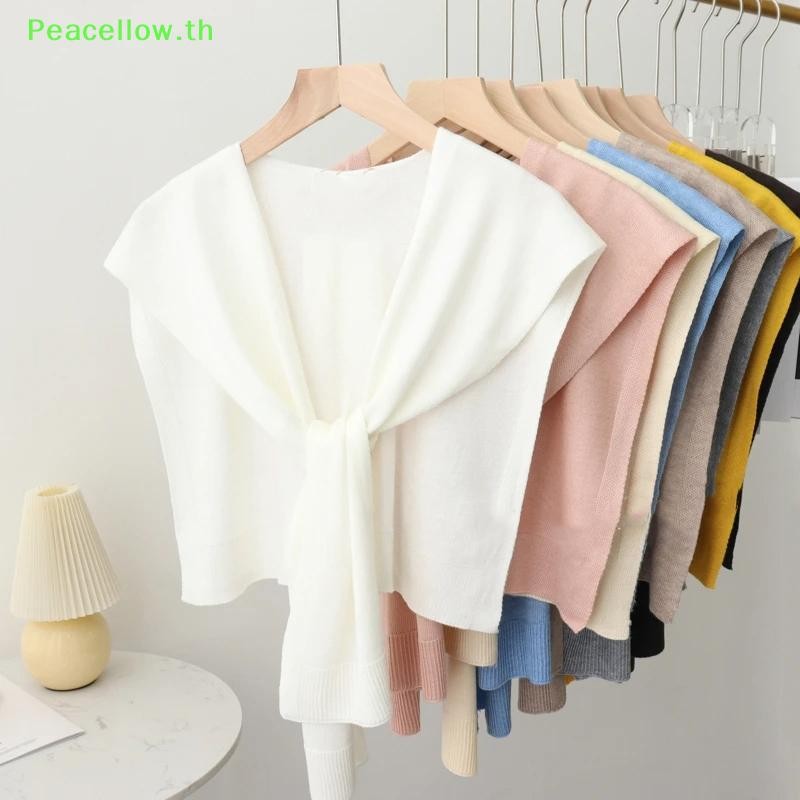 ความสงบ เกาหลีถักผ้าคลุมไหล่ฤดูร้อนเครื่องปรับอากาศปกปลอมคอยามสําหรับผู้หญิง ไทย