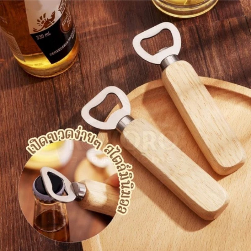 ที่เปิดขวดด้ามไม้ (สำหรับขวดน้ำ/อัดลม) - มินิมอล พกพาสะดวก วัสดุสแตนเลสไม่เป็นสนิม ด้ามไม้จริง G3210