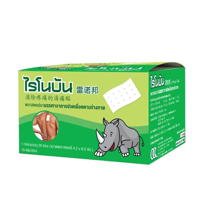 [ ยกกล่อง (20 ซอง) ] Rhinobun Plaster ไรโนบัน พลาสเตอร์ แผ่นแปะลดปวด กอเอี๊ยะ แก้ปวดฟัน ปวดกล้ามเนื้อ นีโอบัน