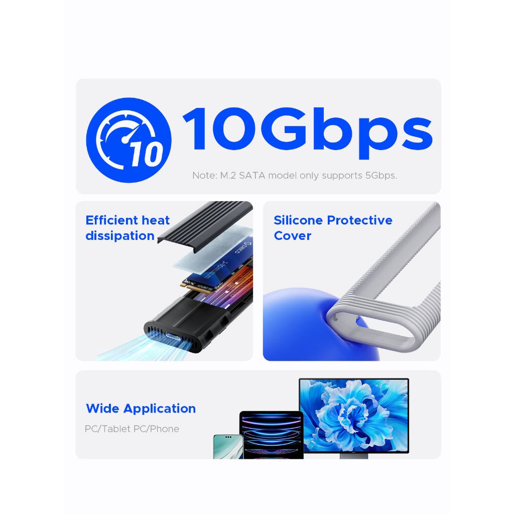 ORICO M.2 NVMe/SATA SSD Enclosure USB อะแดปเตอร์ภายนอกรองรับ UASP สําหรับ PCIe NVMe และ SATA SSD (AXM2)