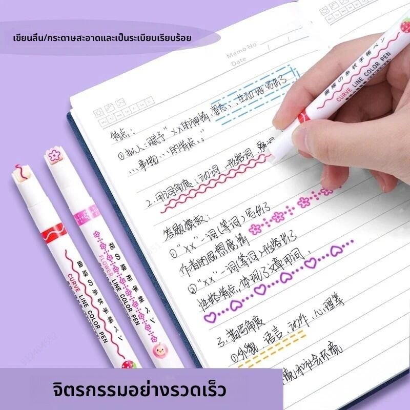 6 ชิ้น/เซ็ตดอกไม้ เกาหลีเครื่องเขียนอุปกรณ์สํานักงานโรงเรียนของขวัญ ปากกามาร์กเกอร์ ไฮไลท์ แบบเส้นคู่ DIY สําหรับวาดภาพ