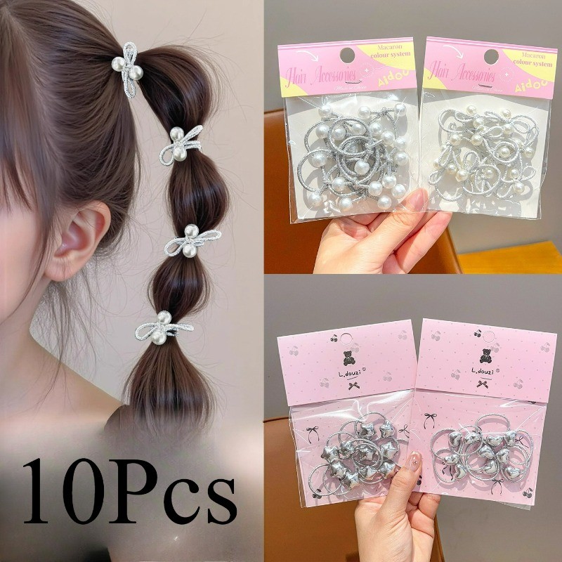 ชุดกุทัณฑ์ยางยืดหยุ่นสำหรับเด็กสาว 10 ชิ้น ใช้ผูกผมหางม้าได้อย่างสะดวก