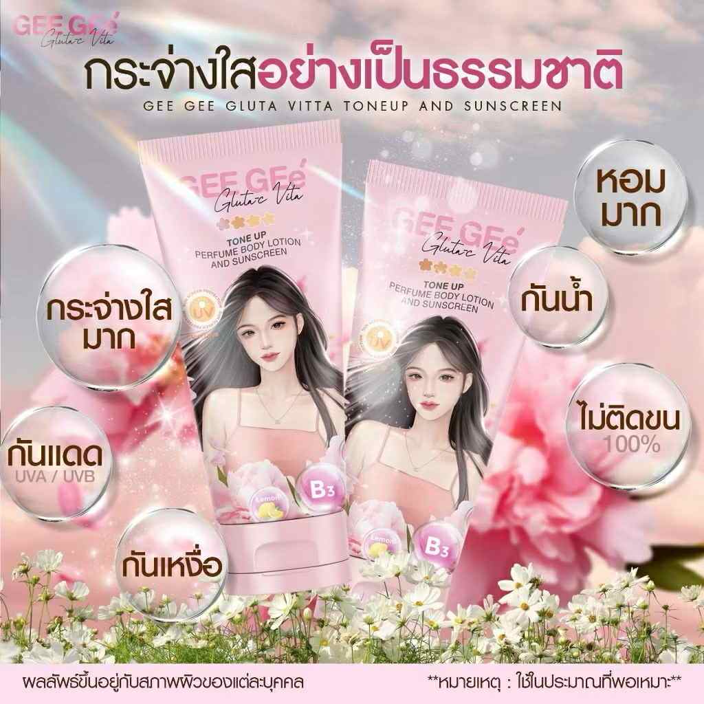 ของแท้ พร้อมส่ง GEE GEe จีจี้ กลูต้า โลชั่นกันแดด แตกตัวเป็นน้ำ โทนอัพ กระจ่างใส ไม่วอก ไม่เทา ไม่ติดขน ไม่เหนียว พอกผิว
