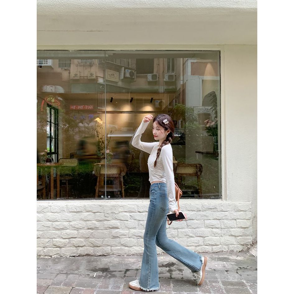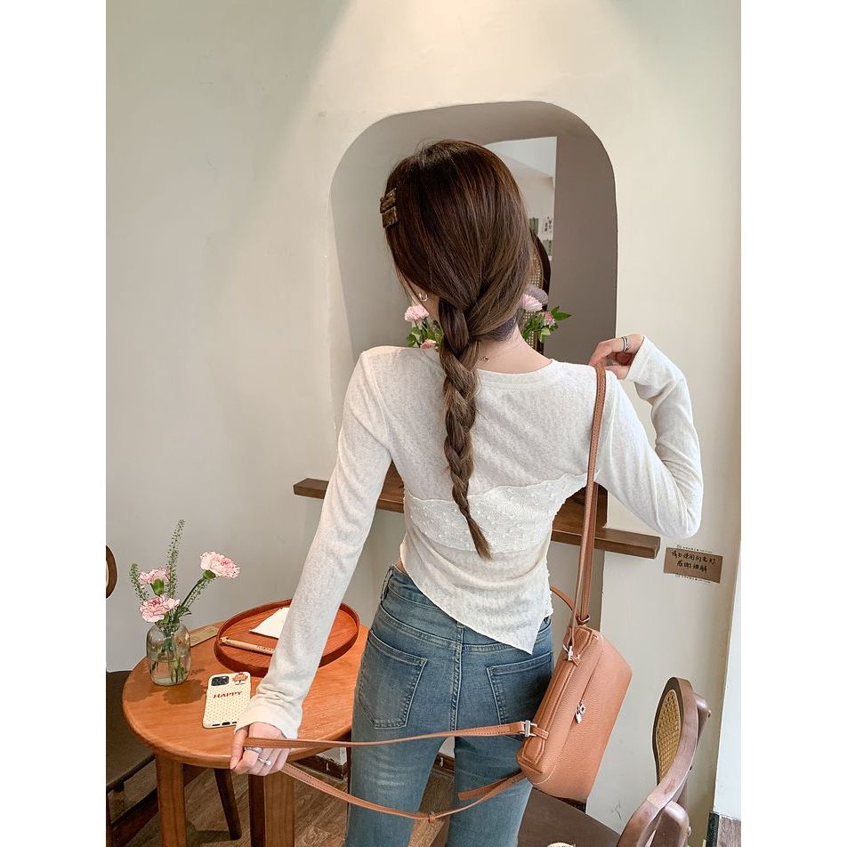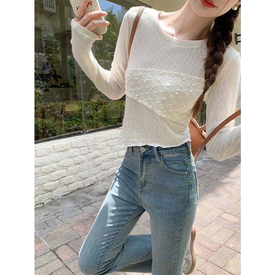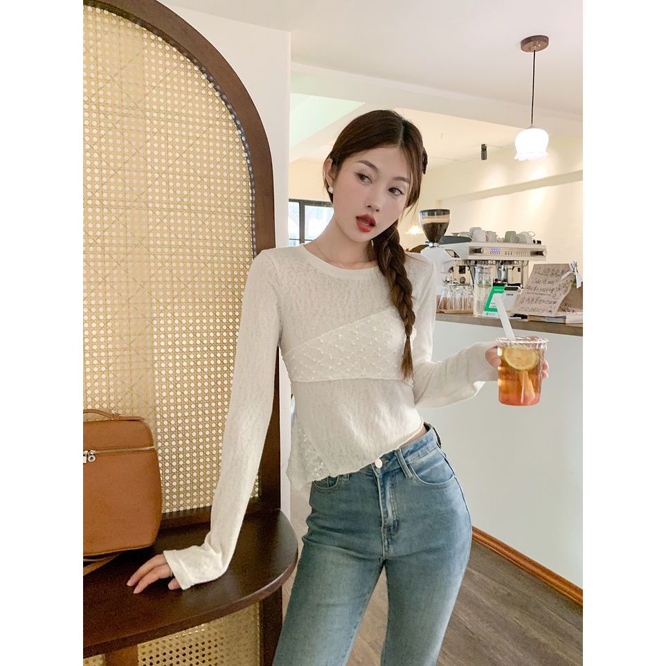 แอปริคอทแขนยาวคอกลม เสื้อยืดผู้หญิง สไตล์กันแดดน่าสวมใส่