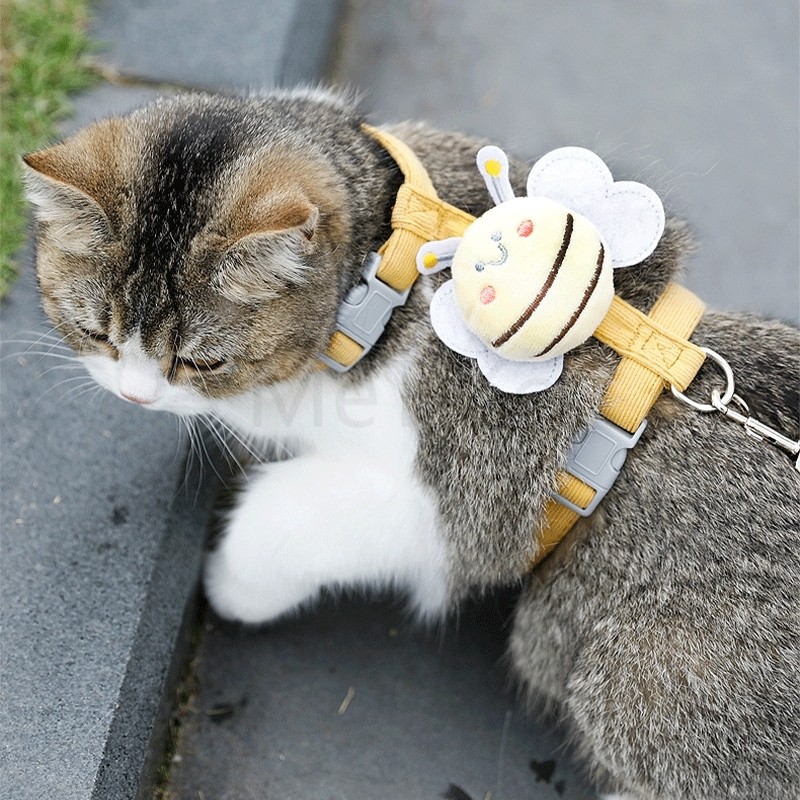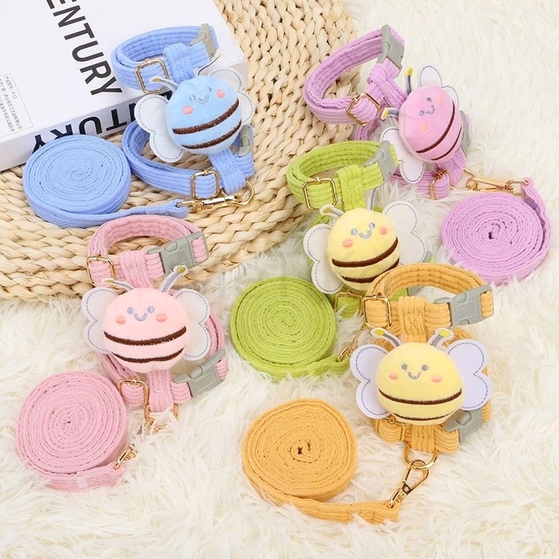 สายจูงสัตว์เลี้ยง แมว หมา กระต่าย สายรัดพร้อมจูง รูปผึ้ง น่ารัก คุณภาพดี มีหลายขนาดให้เลือก สายจูงขนาดเล็กสำหรับสัตว์เล