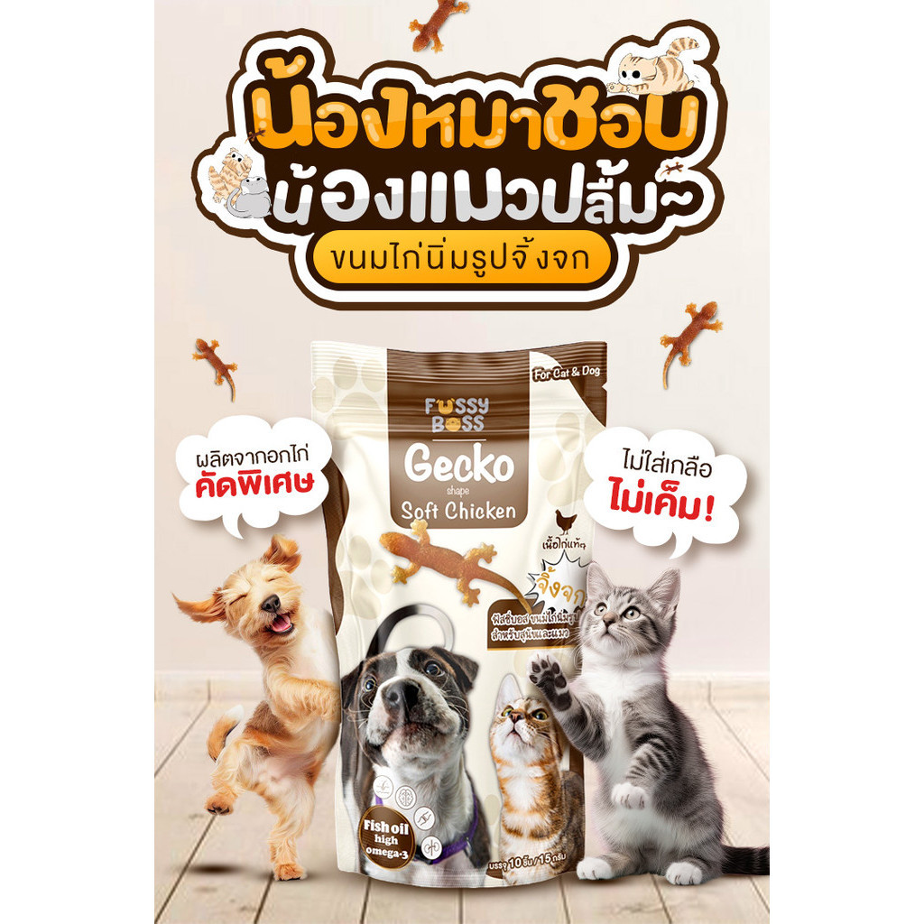 Fussy Boss ฟัสซี่บอส ขนมรูปจิ้งจก ไก่นิ่ม ไม่ใส่เกลือ ทานได้ทั้งสุนัขและแมว ขนาด 20 กรัม