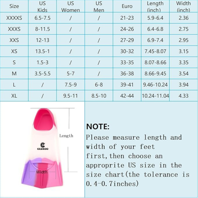 CCZedo ฟินว่ายน้ำและดำน้ำสำหรับทุกวัย ทำจากซิลิโคนนุ่มยืดหยุ่น มีกระเป๋าเก็บIncluded