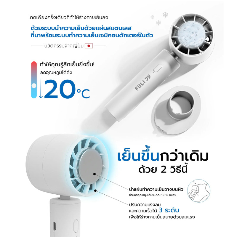 FULICO พัดลมไอเย็นไฟฟ้าแบบพกพา ICE COOLING MINI FAN พร้อมแท่นวางโทรศัพท์ สีขาว