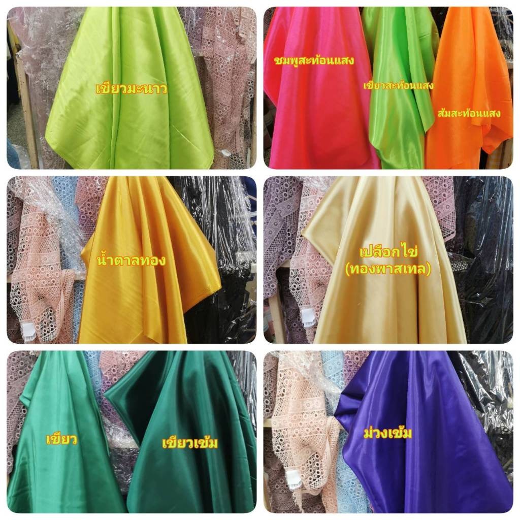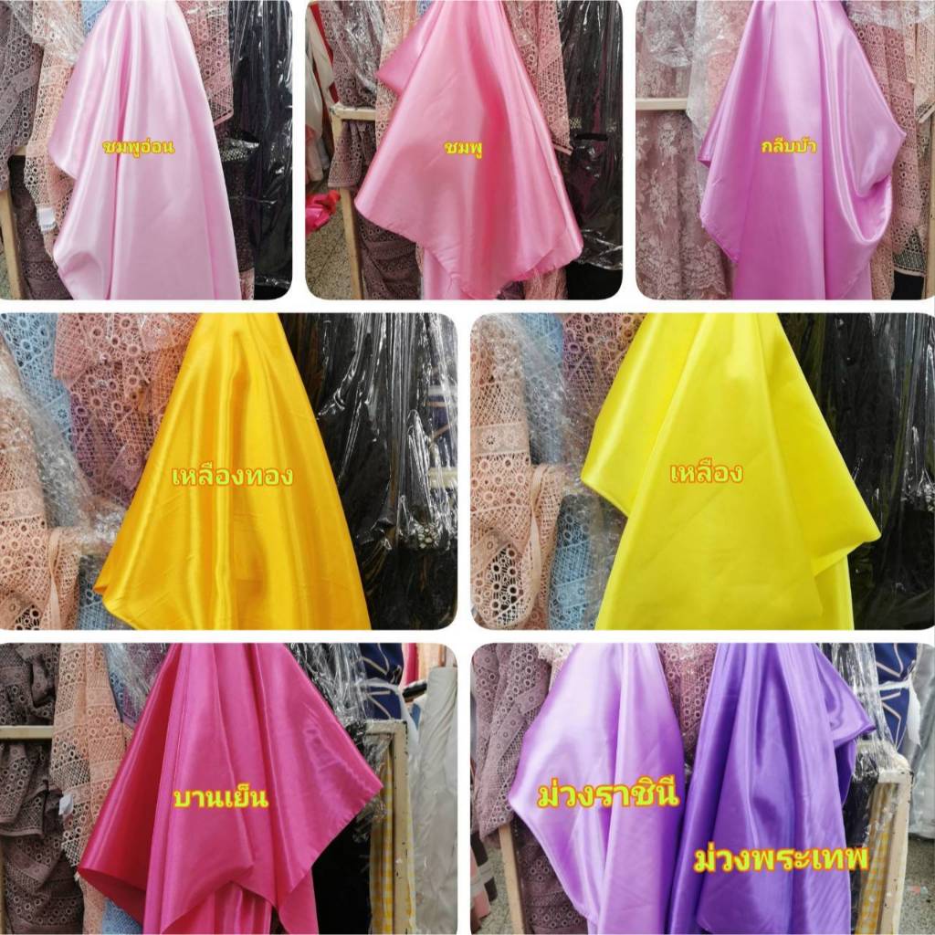 ผ้าเมตร ผ้าเครป ต่วนซาติน เครปมัน ตัดชุดไทยเด็ก จับจีบโต๊ะผูกรั้ว ผูกเวที สไบ ระบายงานพิธี หน้า45นิ้ว (110เซน)