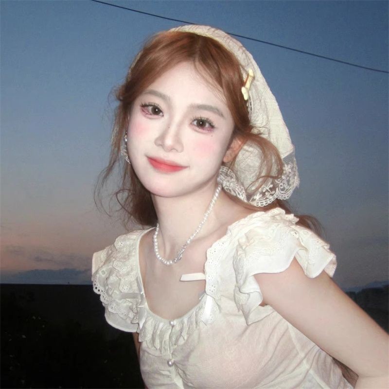 ผ้าพันคอ ผ้าโพกศีรษะ ทรงสามเหลี่ยม แต่งลูกไม้ ลายดอกไม้ สีชมพู สไตล์ฝรั่งเศส แฟชั่นสําหรับสตรี Y2K