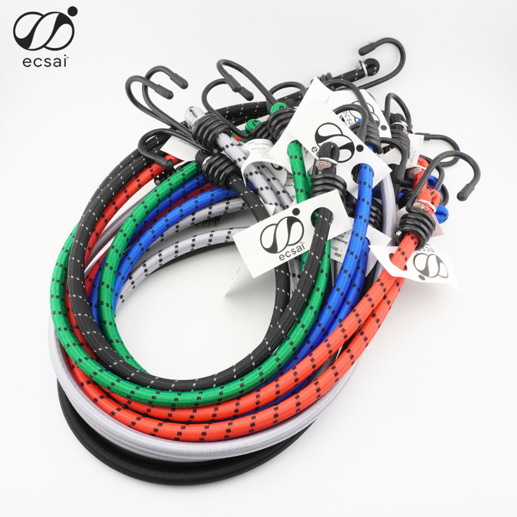 ecsai สายรัดของยางยืด PP พร้อมตะขอเหล็ก ขนาด 8 มม. (แพ็ค 2 เส้น) เชือกยางยืด รัดของท้ายมอเตอร์ไซค์