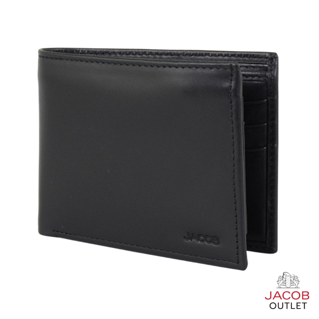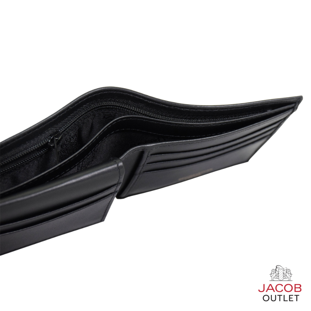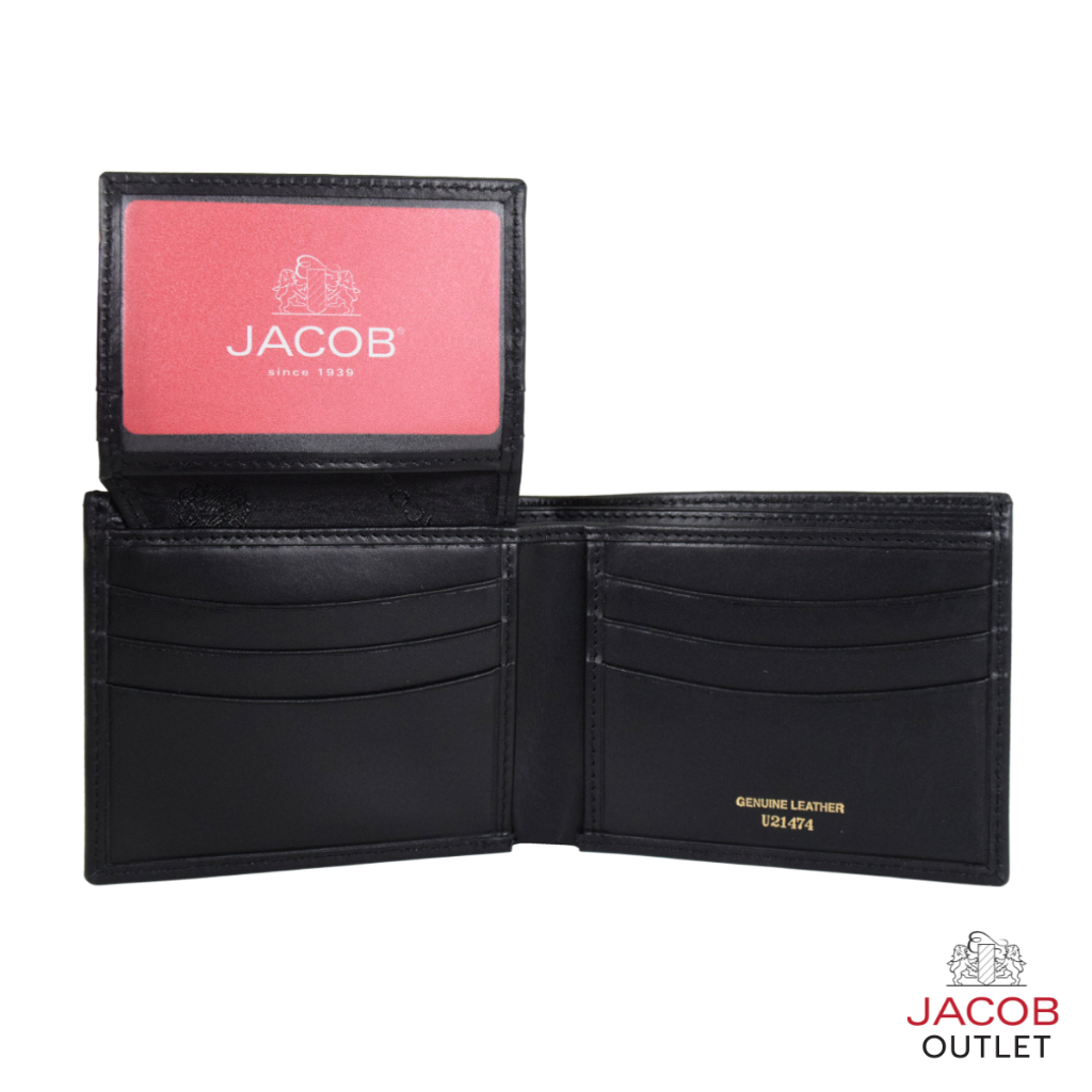 JACOB กระเป๋าสตางค์หนังสีดำ แบบมีช่องพับออก มีช่องรูปหรือ ID - รุ่น U21474