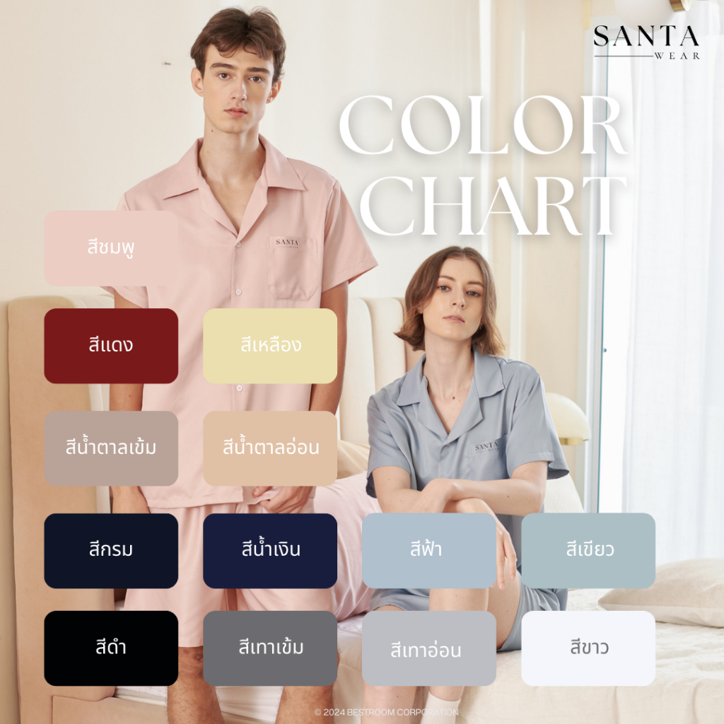 SANTA ชุดนอน ผ้า Microtech เสื้อแขนสั้น กางเกงขาสั้น Unisex ใส่ได้ทั้งผู้ชายและผู้หญิง