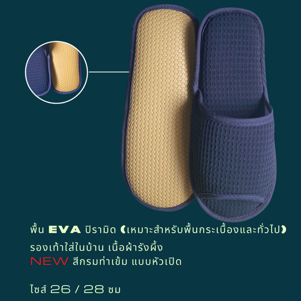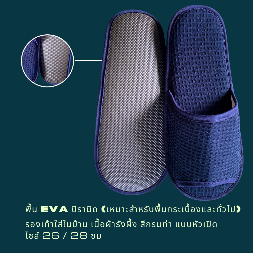 รองเท้าสลิปเปอร์ รองเท้าใส่ในบ้าน ผ้ารังผึ้ง สีกรมท่า/กรมท่าเข้ม หัวเปิด/ปิด ไซส์26/28/30ซม slippersเกรดโรงแรม 5ดาว