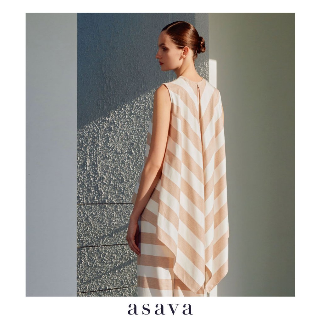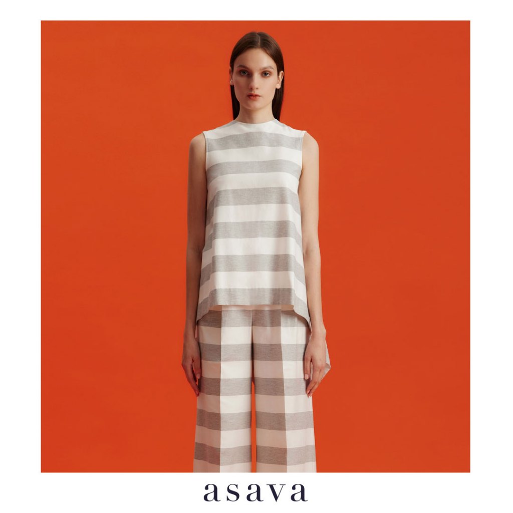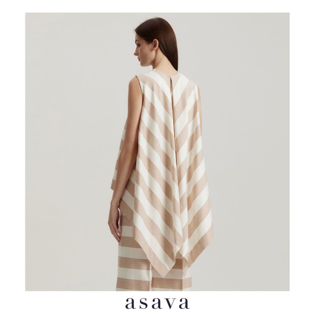 [asava aw24] Avianna Asymmetric Sleeveless Blouse เสื้อผู้หญิง ทรงอสมมาตร คอกลม แขนกุด ตะขอหลัง ผ้าลายทาง