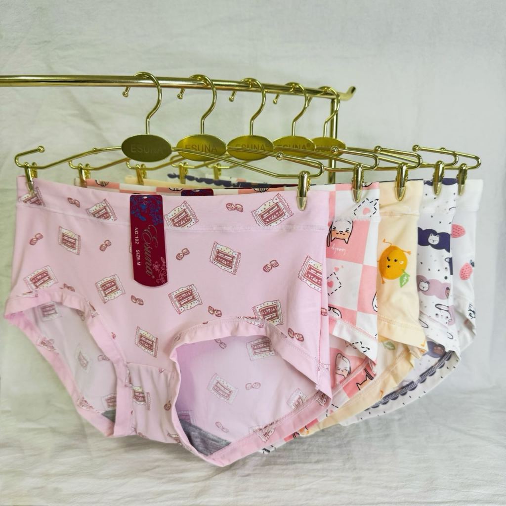 Esuna กางเกงในผ้าลื่นผู้หญิง ลายการ์ตูน น่ารัก สีสันสดใส (1แพ็ค มี 2-5 -10ตัว) เนื้อผ้าเย็นสบาย ใส่แล้วไม่ร้อน