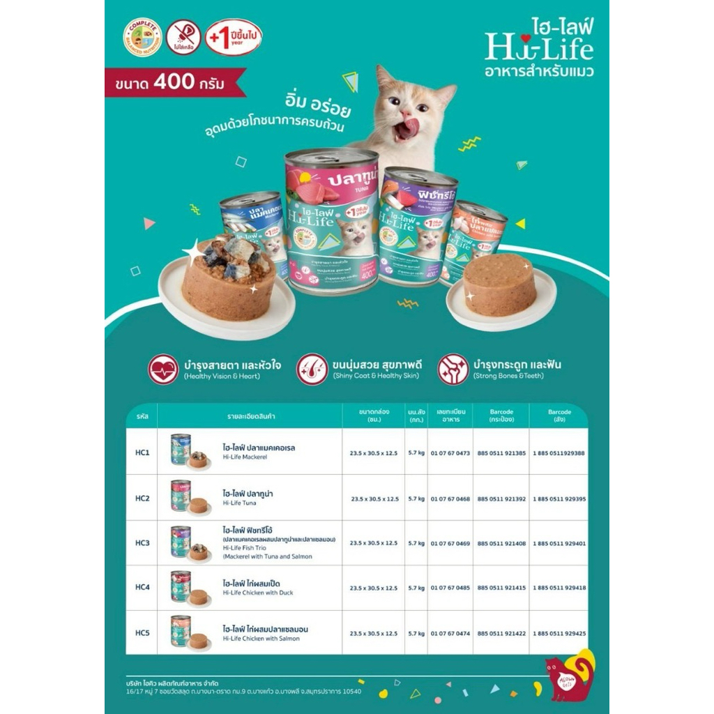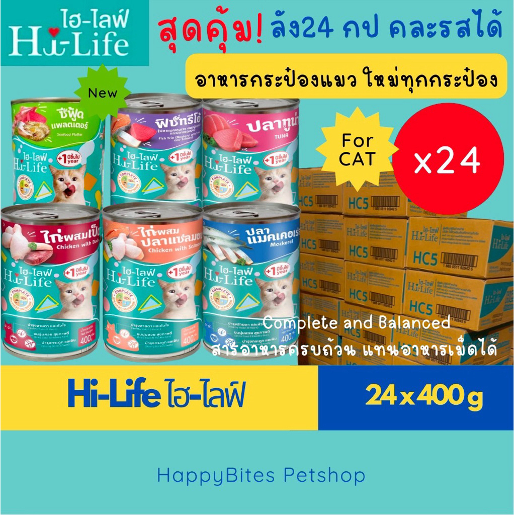 (24กระป๋อง) Hi-Life ไฮไลฟ์ อาหารเปียกแมว แบบกระป๋อง สำหรับแมว Complete & Balanced ขนาด 400 กรัม (ห่อบับเบิ้ล)