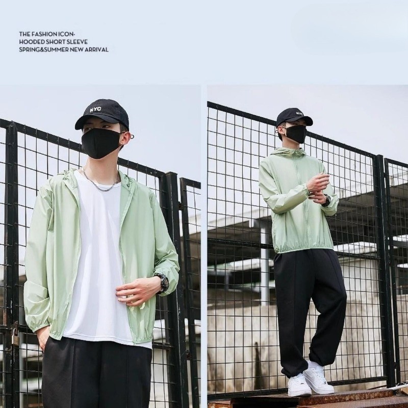 【จัดส่งจากกรุงเทพฯ】GENIO LAMODE เสื้อคลุมกันแดดมีฮู้ด กันน้ำกันฝน ผู้ชายและผู้หญิง UPF50+!!! เสื้อกันแดดผ้าเย็นเหมือนไหมน้ำแข็ง เสื้อกันแดดกันยูวีสำหรับกลางแจ้ง น้ำหนักเบานุ่ม แห้งเร็วระบายอากาศดี M-4XL