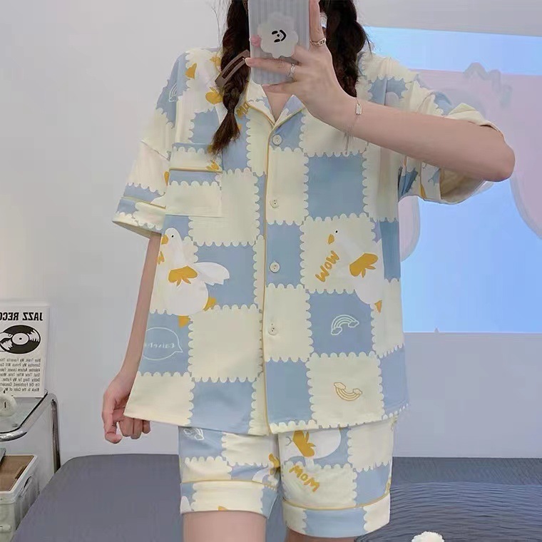 ชุดนอนลายการ์ตูน เสื้อแขนสั้น และกางเกงขาสั้น มีบราในตัว ผ้าใส่สบาย สามารถสวมใส่กลางแจ้งได้