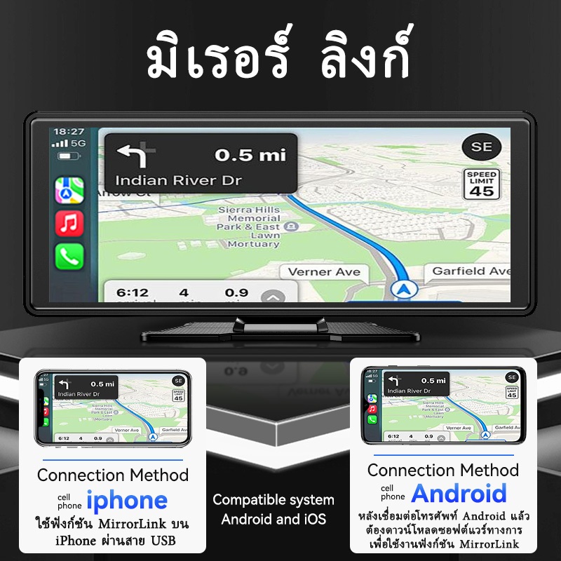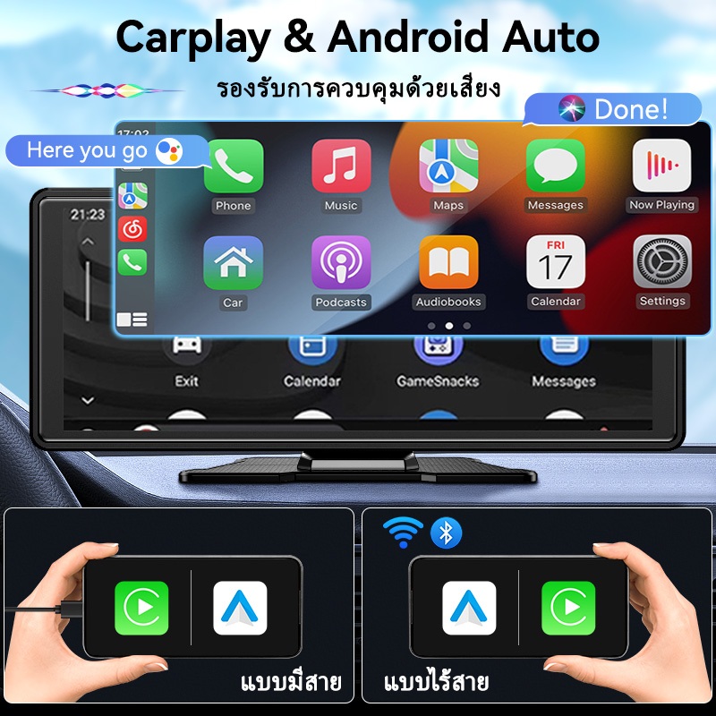 VENBES แบบพกพา 10.26 นิ้ว เครื่องเล่นมัลติมีเดีย Wireless CarPlay Android Auto หน้าจอสัมผัส บลูทูธ USB/TF/AUX