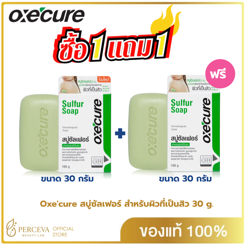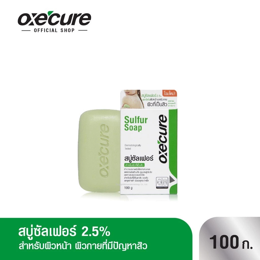 1แถม1 Exp.09/27 Oxecure สบู่ก้อน สำหรับผิวหน้า และผิวกาย ที่มีปัญหาสิว Sulfur Soap 30g และ 100 g