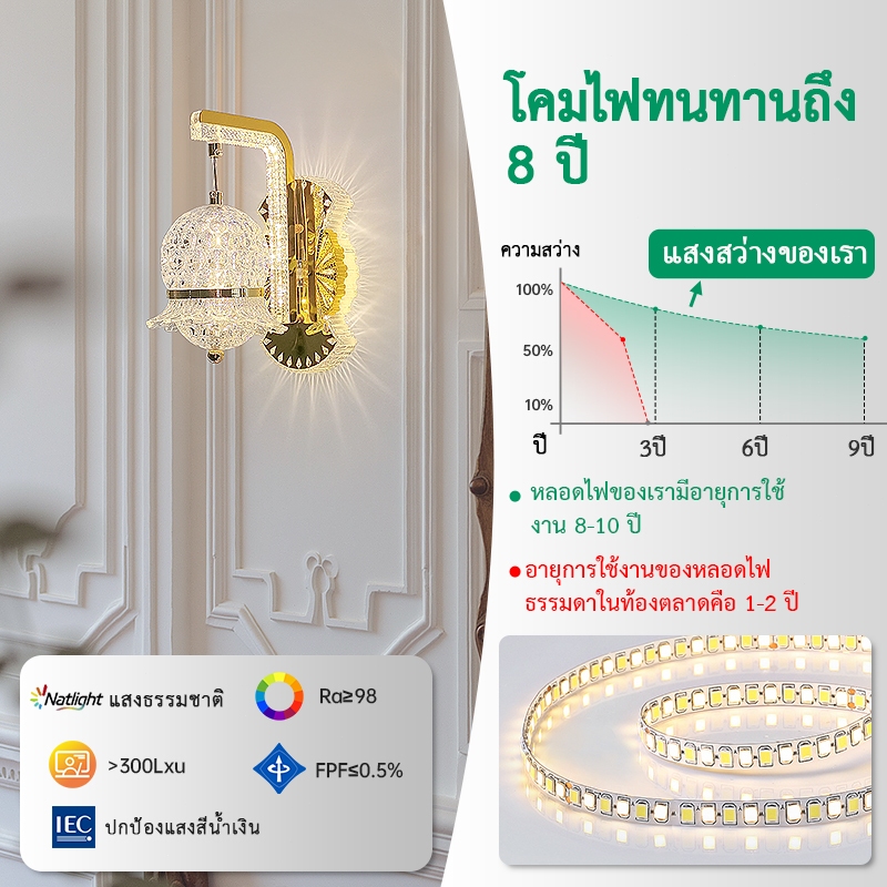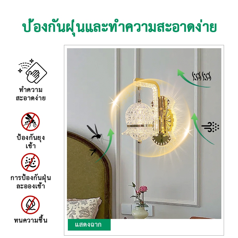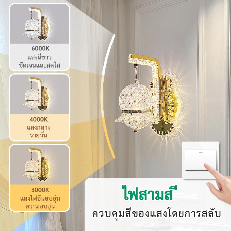 GEJIESE 3สี ไฟติดผนัง คริสตัลไฟติดผนัง ของแต่งห้อง ของแต่งบ้าน แต่งห้องนอน ไฟแต่งห้อง ไฟหัวเตียง ไฟห้องนอน โคมไฟคริสตัล
