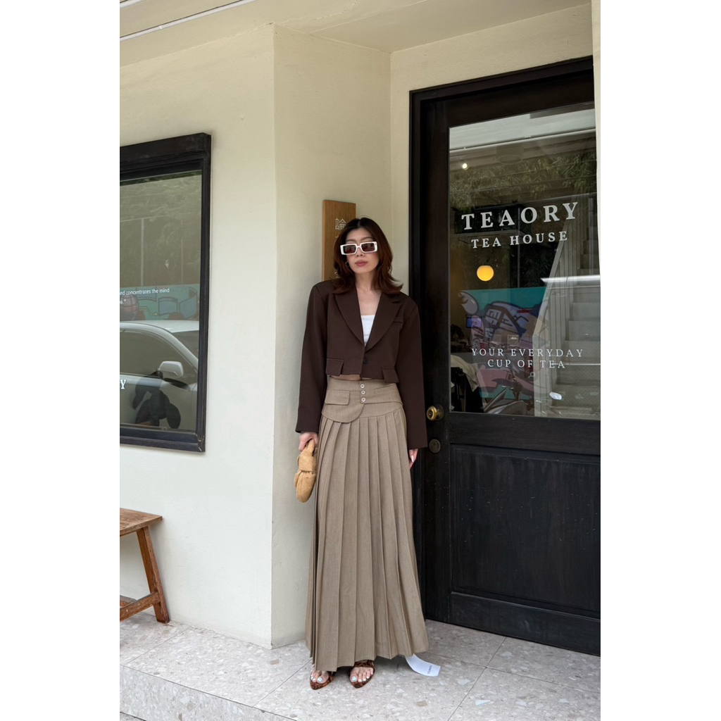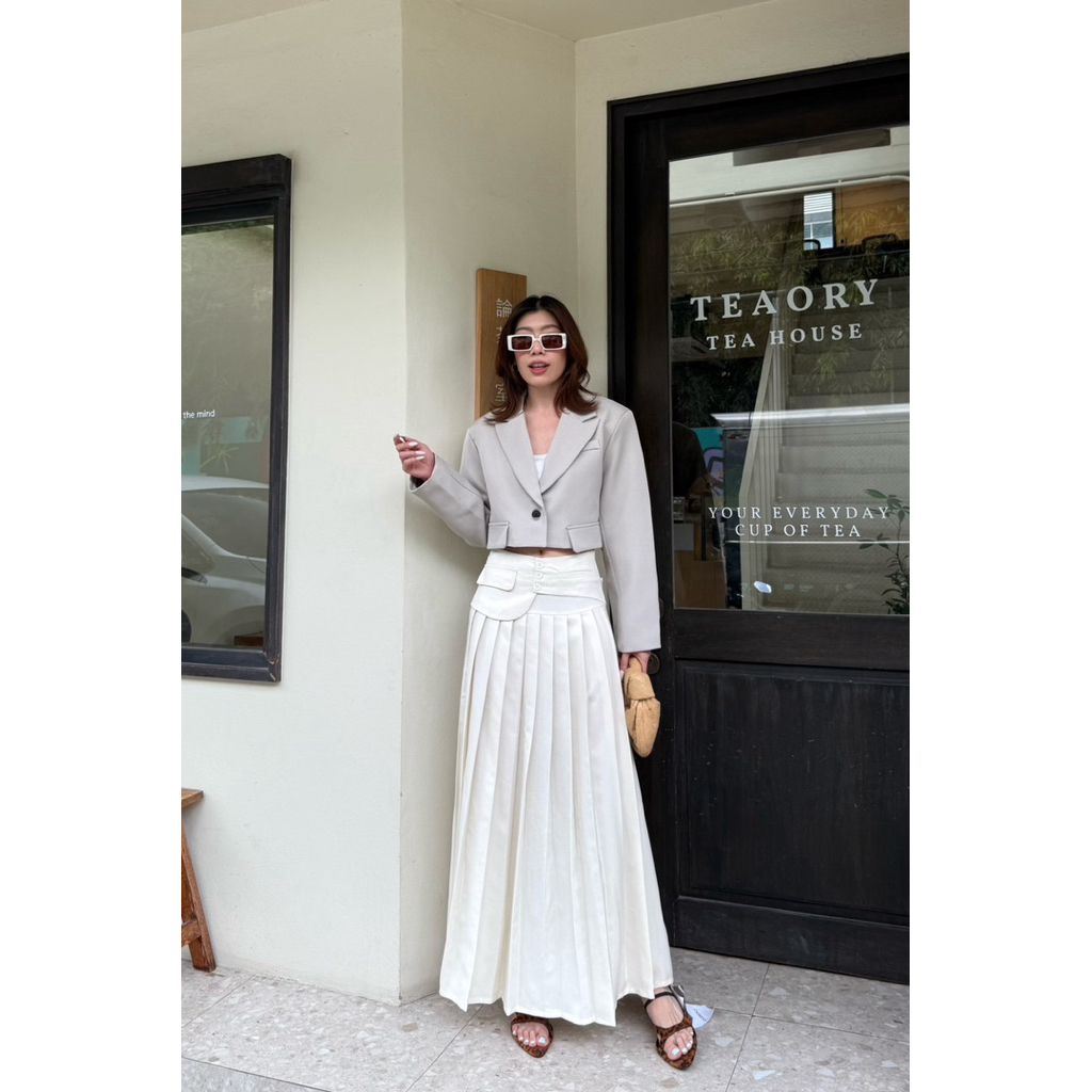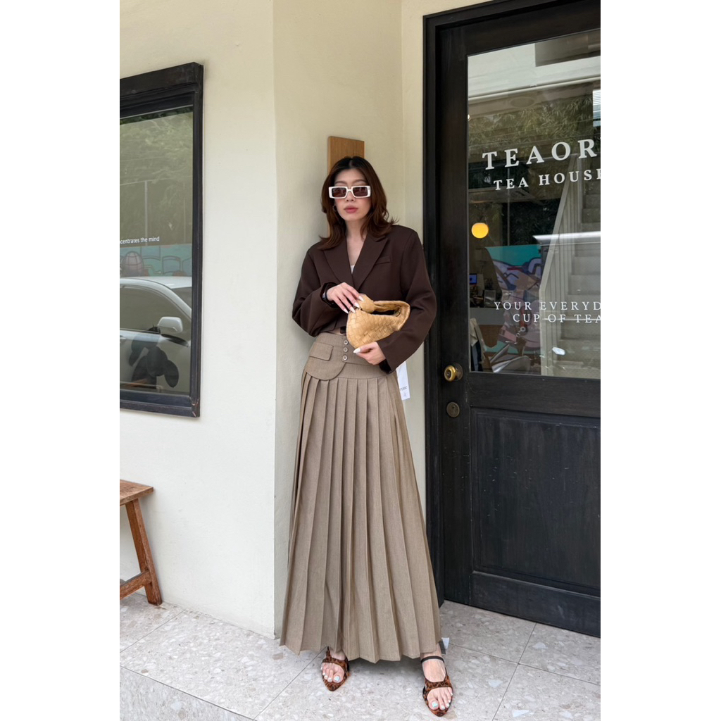 1067 STUDIOX2 MAXI PLEATED SKIRT (SMLXL2XL 590฿) กระโปรงพลีท แพทเทริน์เกาหลี ดีเทลขอบเอวเข็มขัด ด้านหน้าอับพลีท