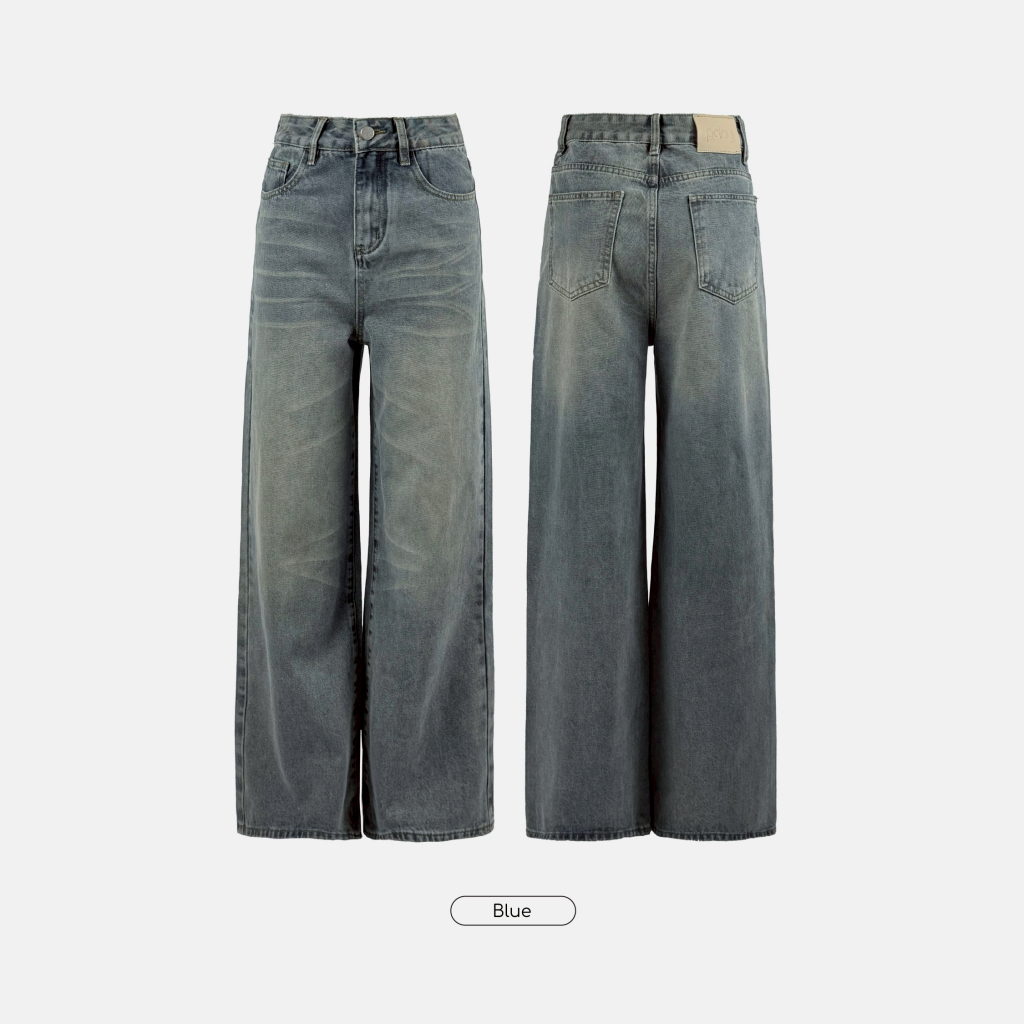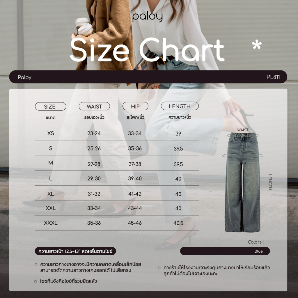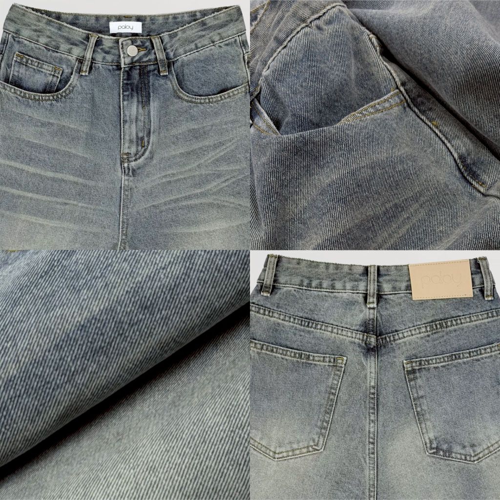 Paloy - PL811 กางเกงยีนส์ขายาวแต่งเฟด ทรงกระบอก เฟดหน้า (ผ้าไม่ยืด)