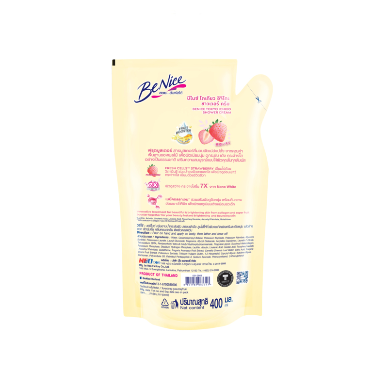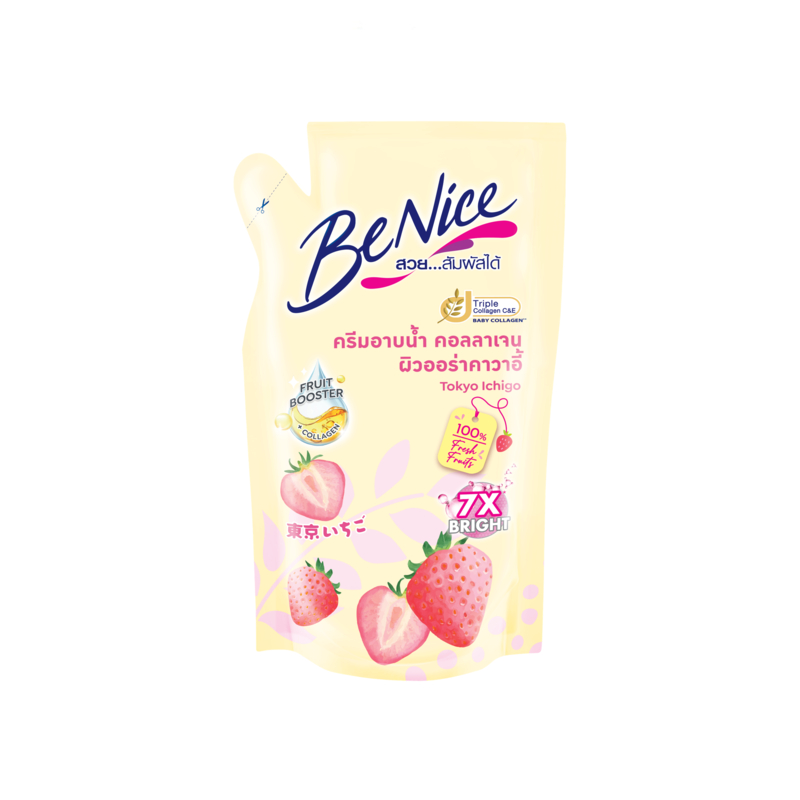 [แพ็ค 3] BeNice บีไนซ์ โตเกียว อิจิโกะ ชาวเวอร์ ครีม ถุงเติม 400 มล. X3, สีขาว, ผิวออร่า คาวาอี้