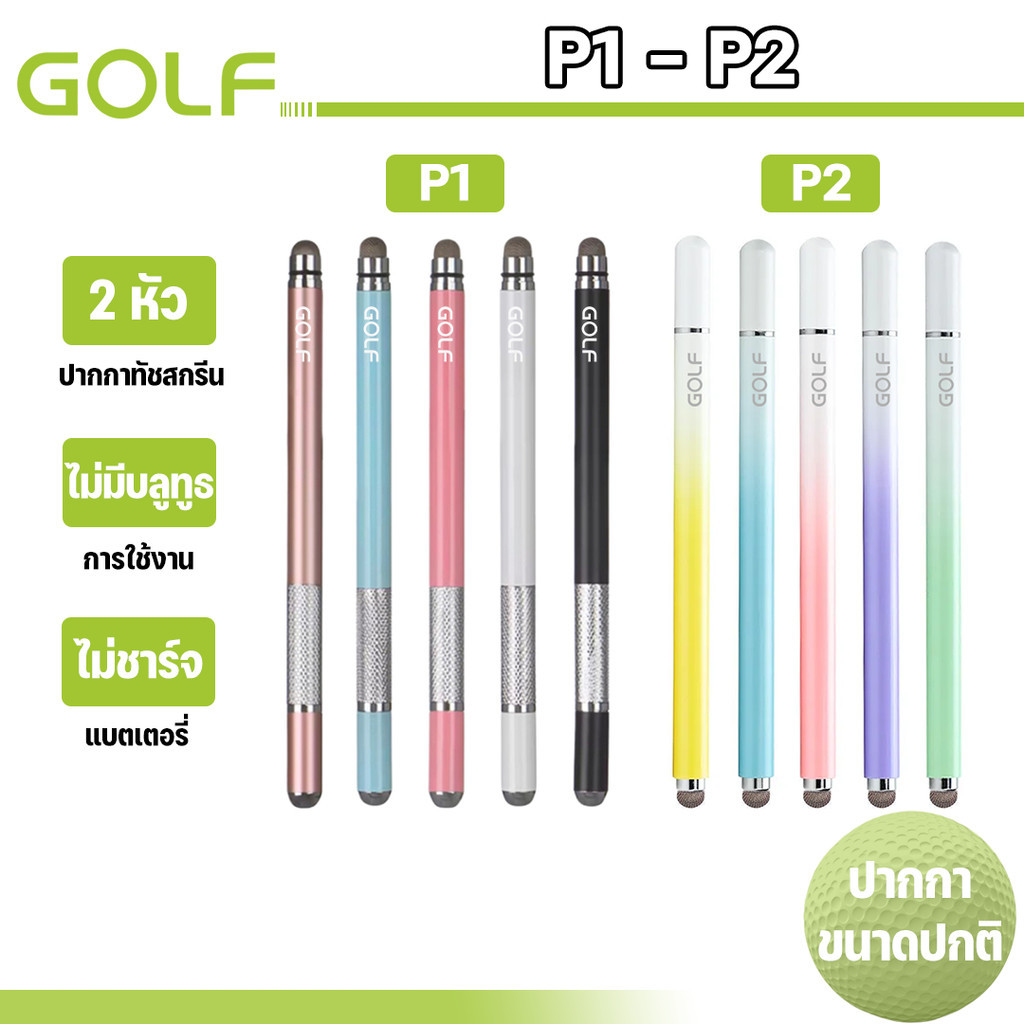 GOLF รุ่น P1 P2 ปากกาทัชหน้าจอ Stylus Pen แบบหัวถักและแบบจานสำหรับ Smartphones และTablets