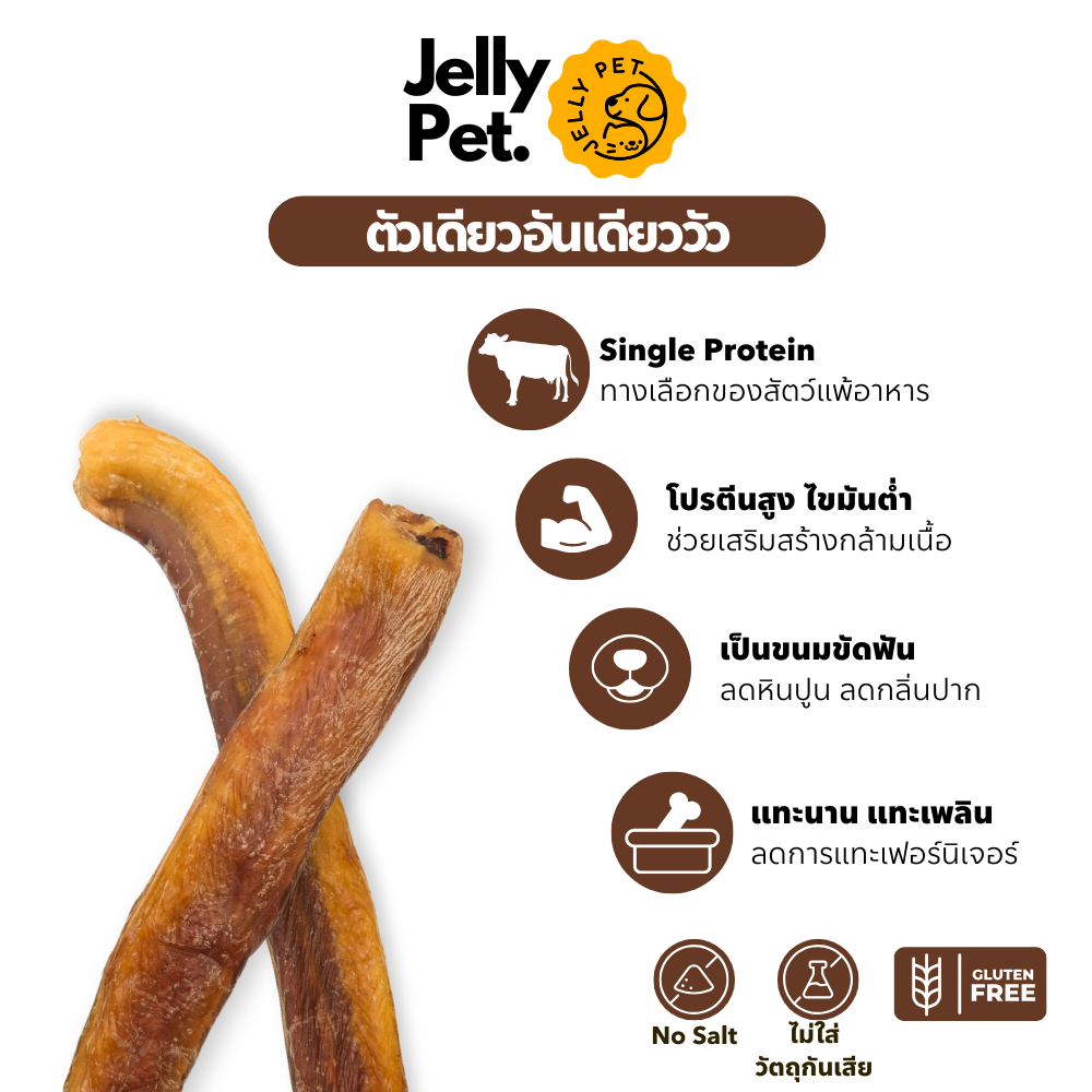 Jelly Pet Bully Stick ตัวเดียวอันเดียววัว ขนมขัดฟัน ขนมสุนัขสุขภาพ ขนมหมาสุขภาพ