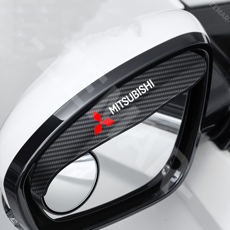 Mitsubishi 2 ชิ้น กระจกมองหลัง กันฝน คิ้ว ด้วย กระจกมองจุดบอด เสื้อกันฝน คาร์บอนไฟเบอร์ ติดกระจกข้างหมุนได้ มุมปรับได้ 360 องศา Xpander Cross Triton Grandis Attrage Mirage Outlander Xforce Pajero Sport ASX