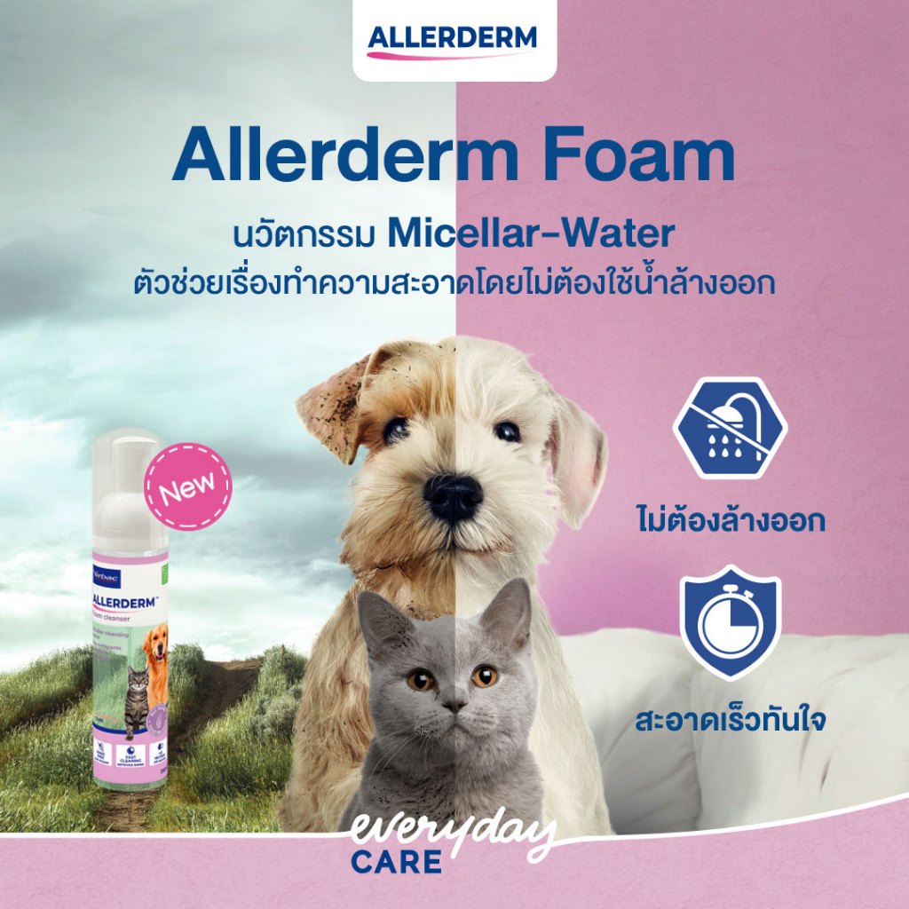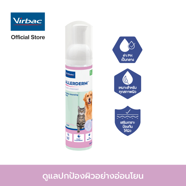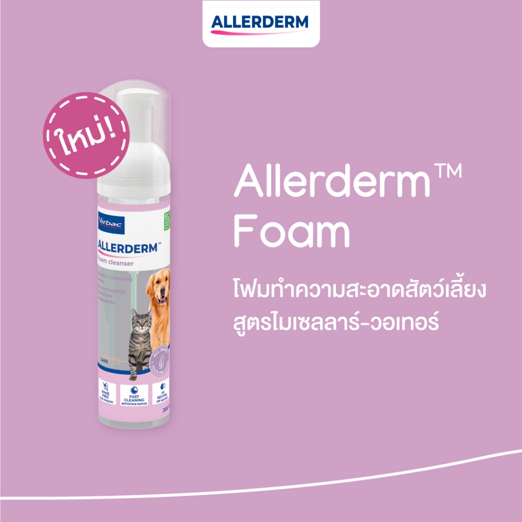Virbac: Allerderm Foam [แท้💯] Cleanser โฟมทำความสะอาดผิวสัตว์เลี้ยง โดยไม่ต้องใช้น้ำ สูตรอ่อนโยน 200 ml.