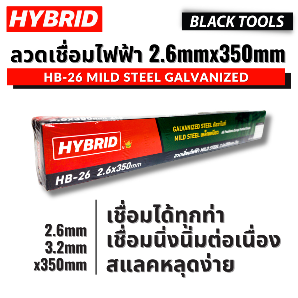 HYBRID ลวดเชื่อมเหล็กเหนียว HB-26 2.6mm 2kg เชื่อมกัลวาไนซ์ได้ BLACKTOOLS