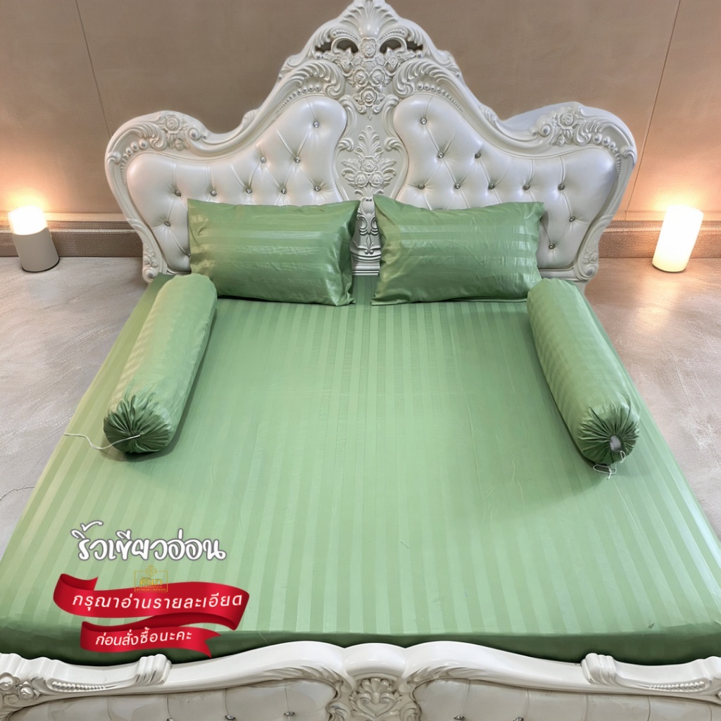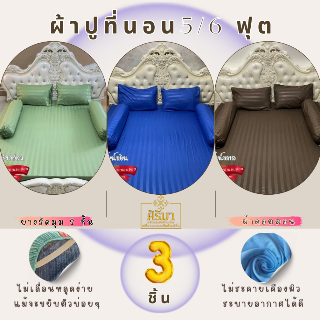 ผ้าปูที่นอน ชุด 3 ชิ้น 5/6 ฟุต ริ้วผ้าซาติน ให้ความรู้สึกนุ่มลื่น เย็นสบาย
