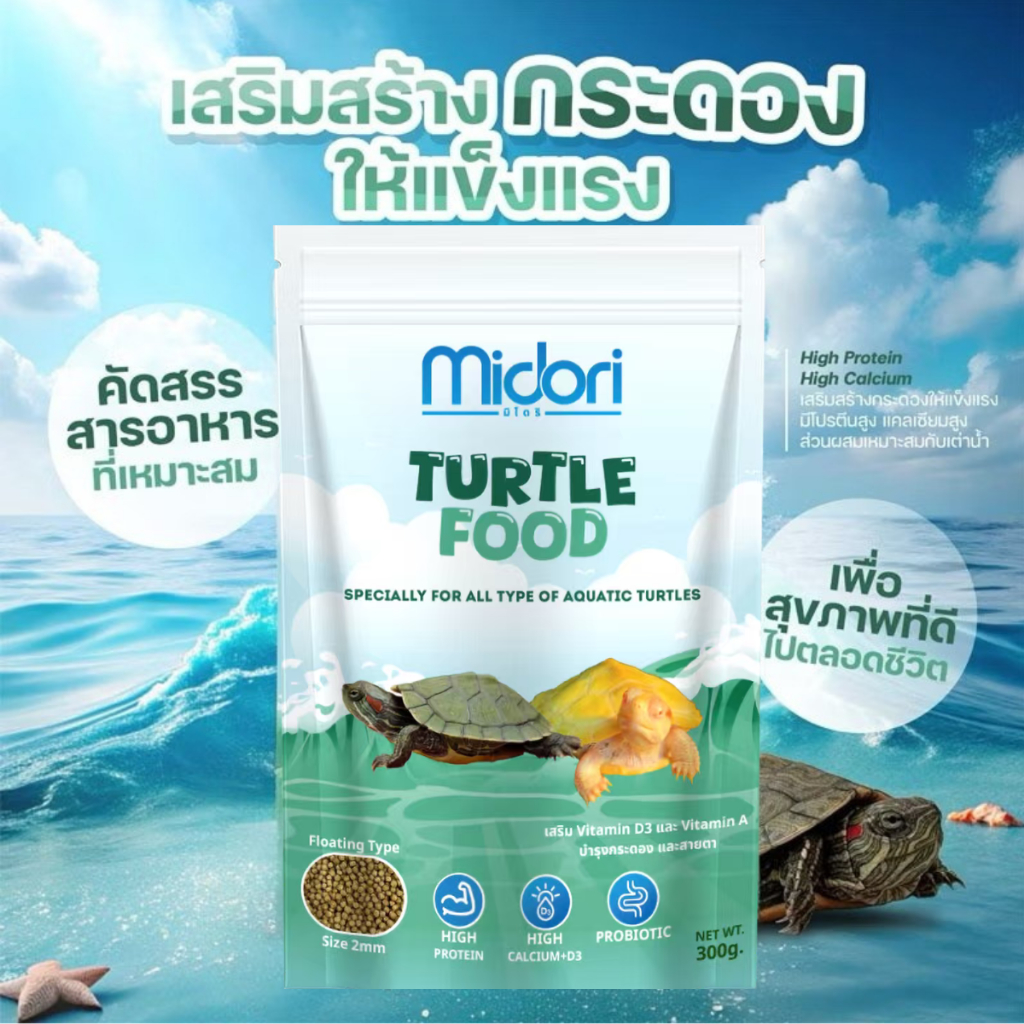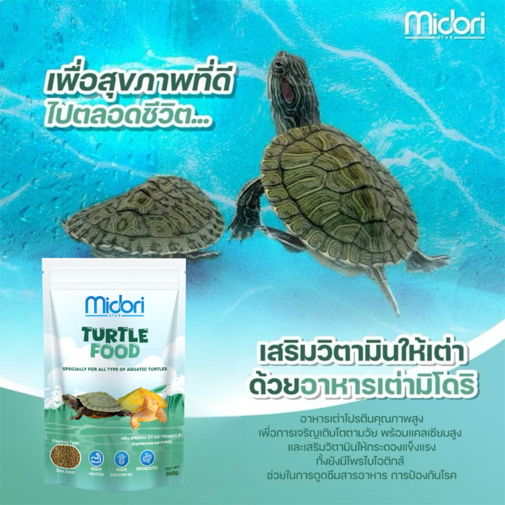 อาหารเต่าน้ำ อาหารเต่าญี่ปุ่น Midori Zoo Midori Turtle Food อาหารเต่าน้ำมิโดริ มีVitamin AและD3 เหมาะกับเต่าน้ำทุกชนิด