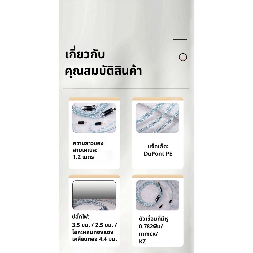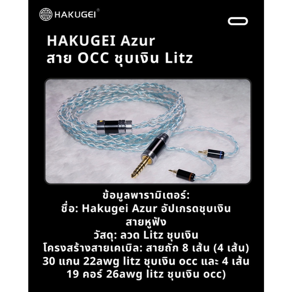 [ประกันศูนย์ไทย] Hakugei Azur สายอัพเกรดแบบมีไมค์ สายหูฟังทองแดง OCC ชุบเงินถัก Litz ให้เสียงชัดเจนทุกย่าน