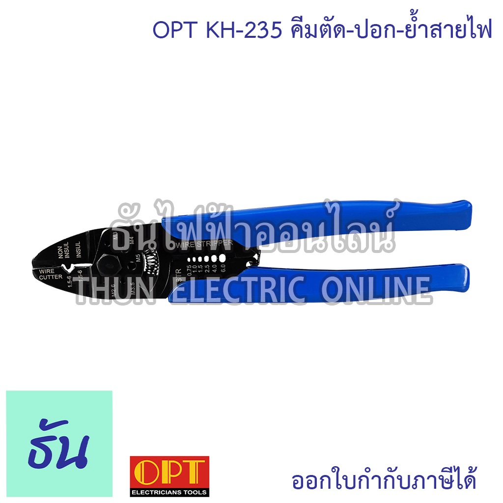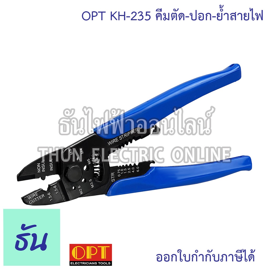 OPT รุ่น KH-235 คีมตัด ปอก ย้ำสายไฟ คีมปอกสายไฟ คีม คีมย้ำ ที่ปอกสายไฟ คีมย้ำสาย คีมช่างไฟฟ้า คีมตัดสาย คีมสายไฟ
