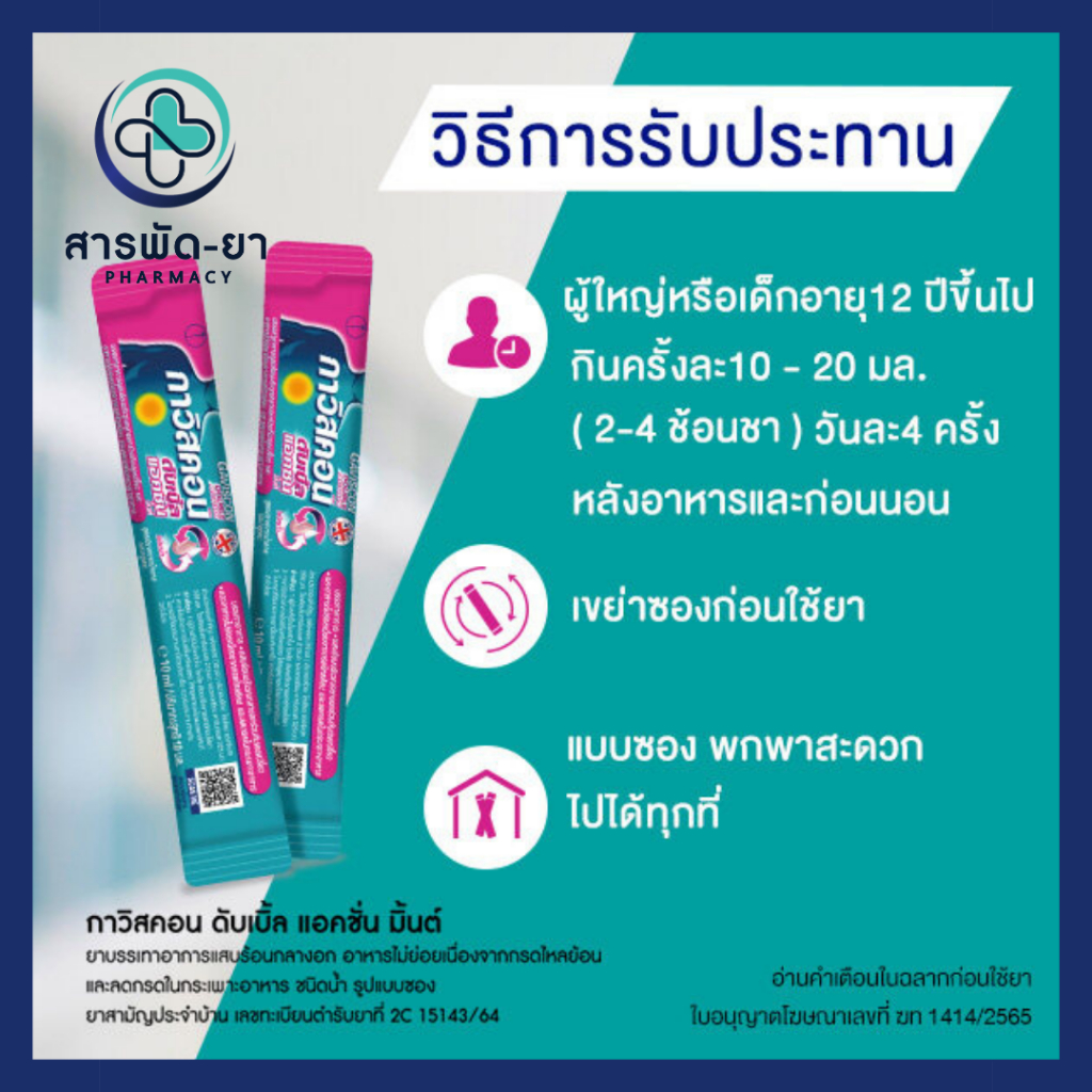 [แพ็ค 12 ซอง] Gaviscon กาวิสคอน สีชมพู ดับเบิ้ล แอคชั่น มิ้นต์ ยาลดกรด กรดไหลย้อน รักษาหลากหลายอาการจากกรดไหลย้อน 10 มล.