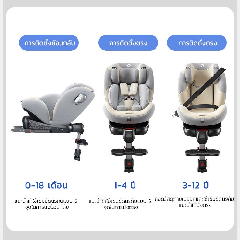 คาร์ซีทเด็ก คาร์ซีท ISOFIX เบาะนั่งนิรภัยสําหรับเด็กเหมาะสําหรับ 0 ~ 12 ปี 360° การหมุน