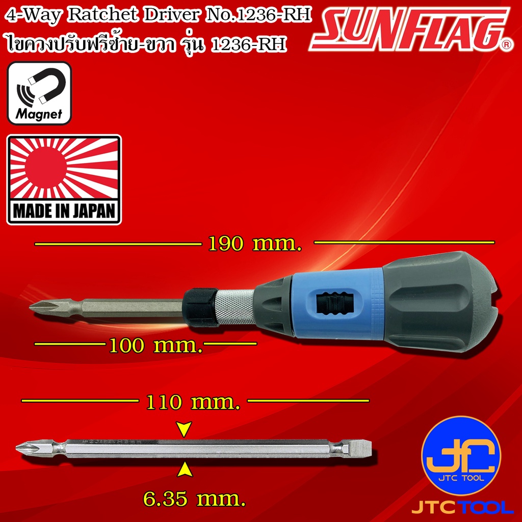 Sunflag ไขควงปรับฟรีซ้ายขวาปลายมีแม่เหล็กปากแฉกและปากแบน รุ่น 1236-RH - 4 IN 1 Ratchet Drivers No.1236-RH